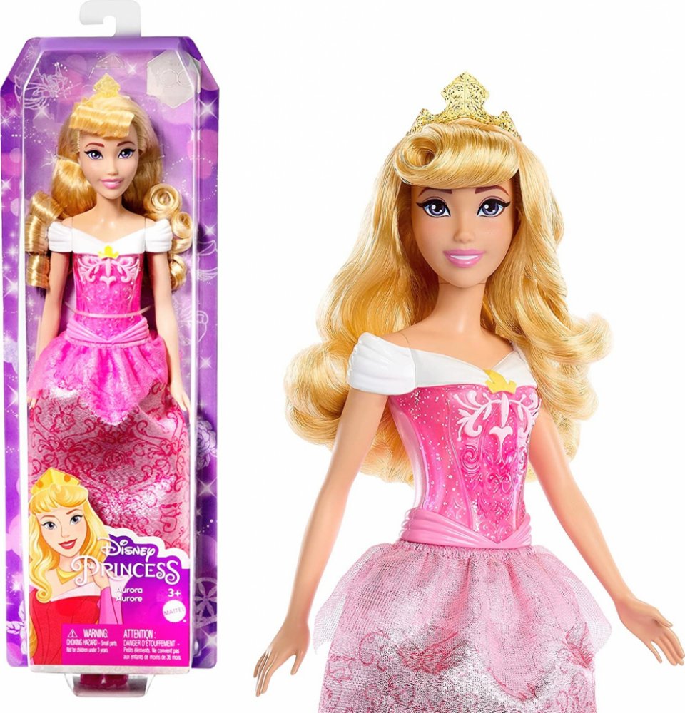 Tato kolekce panenek Disney Princess přináší pohádkové princezny a hrdinky, jako jsou Ariel, Bella, Sněhurka nebo Popelka. Tato panenka Aurora, inspirovaná kreslenou postavičkou z oblíbené filmové klasiky od Disneyho Šípková Růženka, se už neumí dočkat, až si splní své sny. Pohyblivá módní panenka nosí svůj typický outfit z filmu s odnímatelnými botami a diadémem. Skládá se ze třpytivého topu a odnímatelné sukně se vzorem, který hraje roli v historii Aurory. Tato panenka Disney Princess má dlouhé vlasy, které lze upravovat a česat. Ideální dárek pro děti, aby si mohli přehrát příběhy ze svých oblíbených filmů nebo vytvořit svá vlastní dobrodružství.