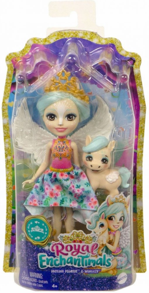 Tyto rozkošné Enchantimaly a hrací sety z královského sortimentu Royal Enchantimals vyjadřují kouzlo přátelství a přírody. Pegasová holka Paolina Pegasus (15 cm) je velmi zvláštním způsobem spojena se svým nejlepším zvířecím přítelem malým Pegasem Wingley - jsou vždy spolu a dokonce vypadají podobně. Dva nejlepší pegasoví přátelé mají speciální podrobnosti, které podněcují fantazii. Díky speciálnímu propojení těchto dvou nejlepších přátel srdce dětí bijí rychleji. Aby se nezanedbávala módní zábava, Paolina Pegasus nosí zářivé oblečení s odnímatelnou sukní, botami, korunkou na vlasy a nádhernými křídly. Bavte se se všemi loutky ze světa Enchantimals. Věk: 4+