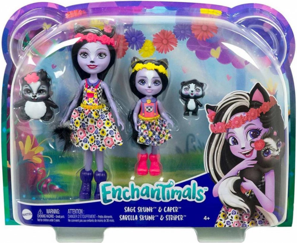Seznamte se se sestřičkami Enchantimals™! Tyto rozkošné panenky Enchantimals™ (15 cm) a jejich roztomilé malé sestřičky (10 cm) dělají rády všechno společně! Vyber si z panenek Bree Zajíčková™, Felicity Lišková™, Danessa Jelínková™, Patter Pávová™ a Sage Skunková™ s jejich malými sestřičkami. Ke každé panence patří také figurka zvířecího kamaráda. Děti si zamilují speciální vazbu se svými přáteli ...