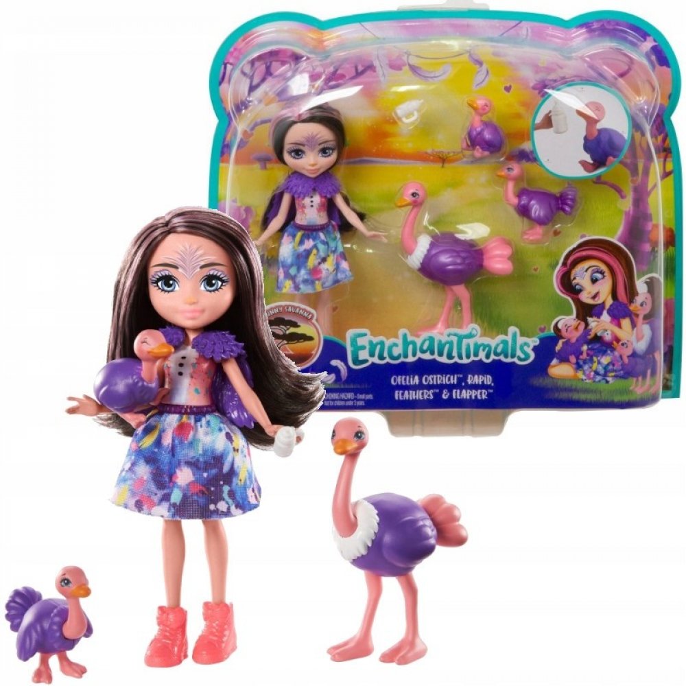 Seznam se s Enchantimals, roztomilými bytůstkami, které spojuje výjimečný vztah s jejich nejlepšími kamarády zvířátky. V tomto herním setu z kolekce Krásnovršky na tebe čeká rozkošná rodinka Enchantimals. V setu najdeš 15 centimetrovou panenku Ofelii Ostrich, 3 zvířecí kamarády Rapid, Feathers a Flapper, a lahvičku. Panenky Enchantimals jsou oblečeny do odnímatelných sukýnek, botek a nechybí ani nejrůznější doplňky. Jakmile tyto panenky spatříš, ihned si zamiluješ jejich osobitý styl a překrásné dlouhé vlasy. Zvířecí kamarádi se stejně jako panenky pyšní unikátními rysy. Malé holčičky si zamilují budování výjimečného vztahu se svými přáteli a oslavování světa, kde se všichni starají jeden o druhého s láskou. Sesbírej je všechny a postav si svůj svět Enchantimals.