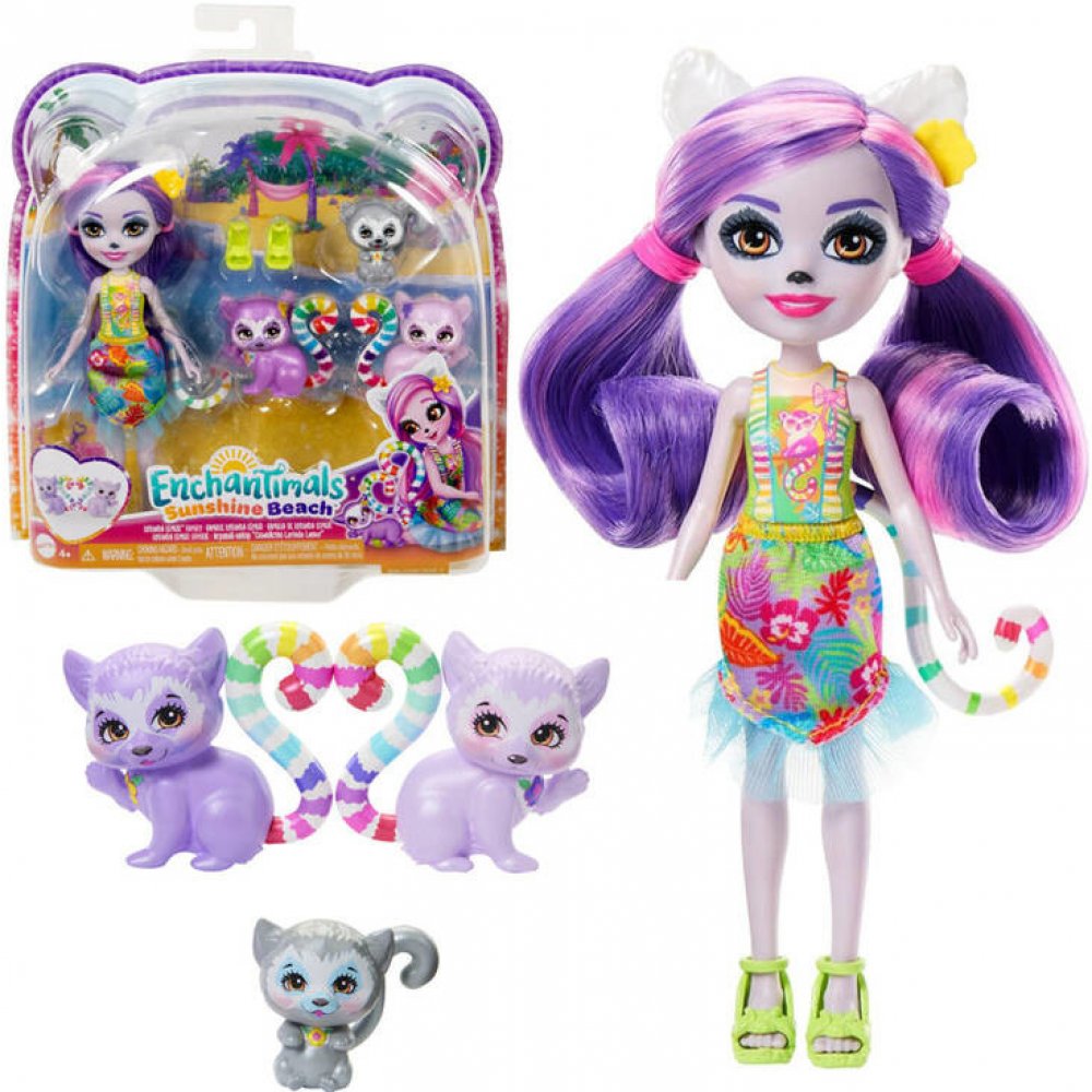 Mattel Enchantimals Sunshine Beach Lorinda Lemur HRX86