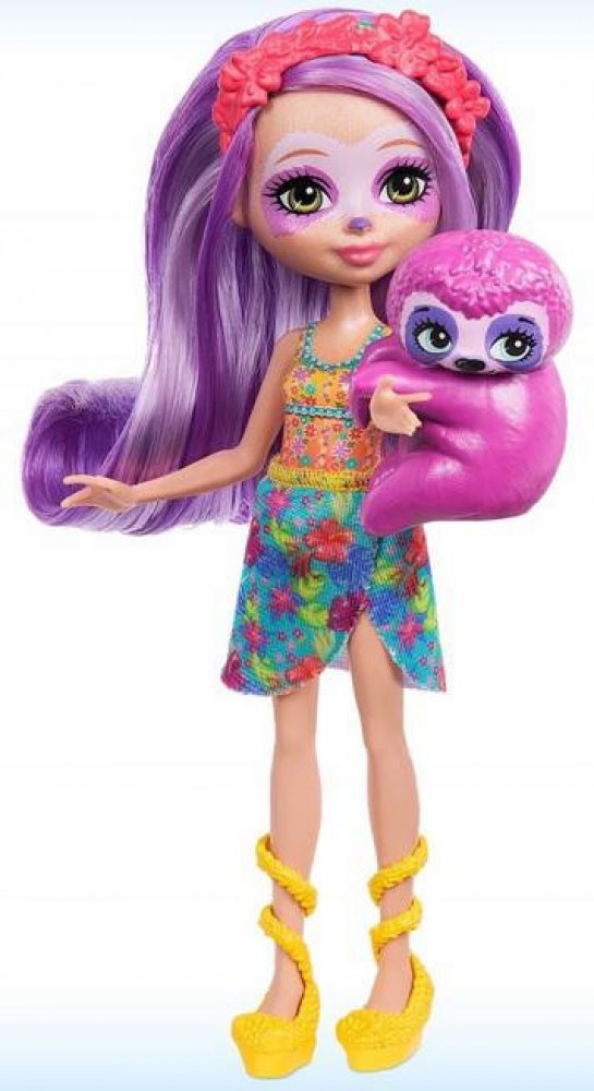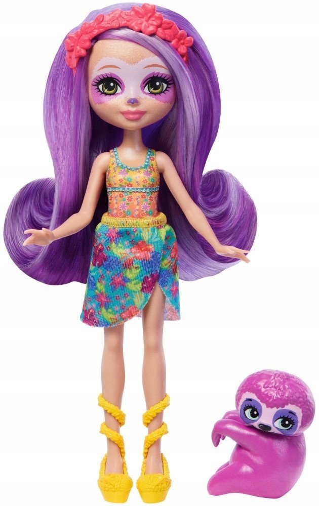 Enchantimals Lenochod panenka Sabindra Lenochod + mazlíček Tang Kolekce panenek Enchantimals je inspirována skupinou roztomilých přátel, kteří sdílejí výjimečné pouto se svými milovanými domácími mazlíčky. Panenka lenochod Sabindra Sloth a její připojitelný zvířecí společník Tang jsou připraveni na den plný zábavy na slunci. Sabindra má krásné barevné vlasy, plážový top (vestavěný) a odnímatelnou sukni. Kamarád lenochod Tang je vždy po jejím boku! Děti si zamilují jedinečné pouto, které tito přátelé Enchantimals sdílejí, a budou chtít sbírat všechny panenky. Poznejte Enchantimals - rozkošné kamarády, které s jejich milovanými zvířátky pojí zvláštní přátelství. Součástí sady je malý lenochod Tang, kterého lze připevnit k ruce panenky Sabindry Sloth, takže jsou nerozluční. K zábavě přispěje i panenka Sabindra Sloth (15 cm) s květinovou gumičkou do vlasů, odnímatelnou sukní a botami. S panenkou Tang se rádi setkávají na pláži. Tato sada s panenkou a figurkou je ideálním dárkem pro děti od 4 let. .