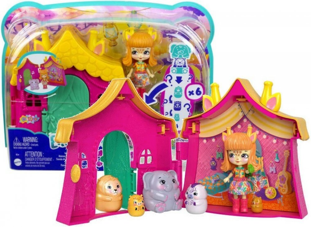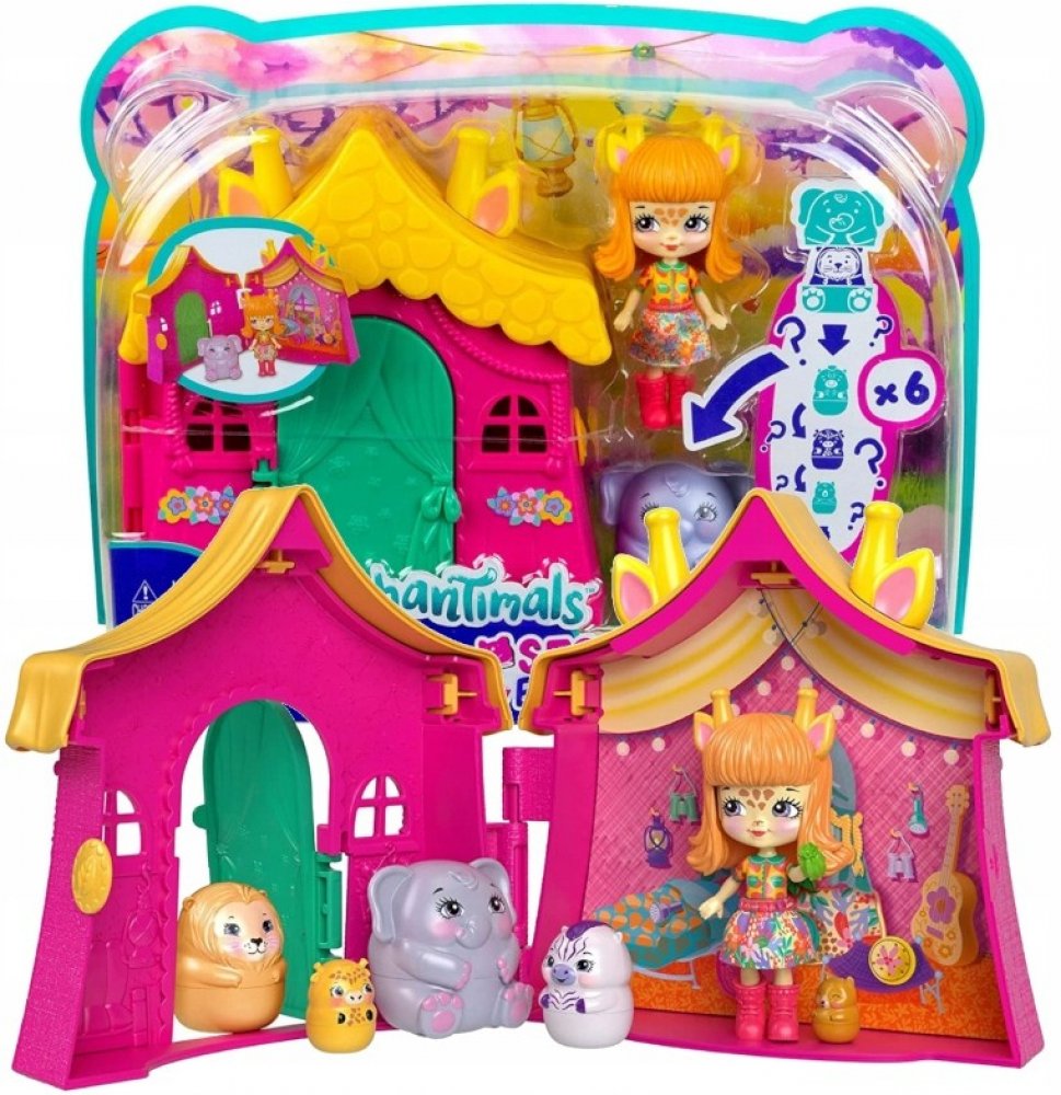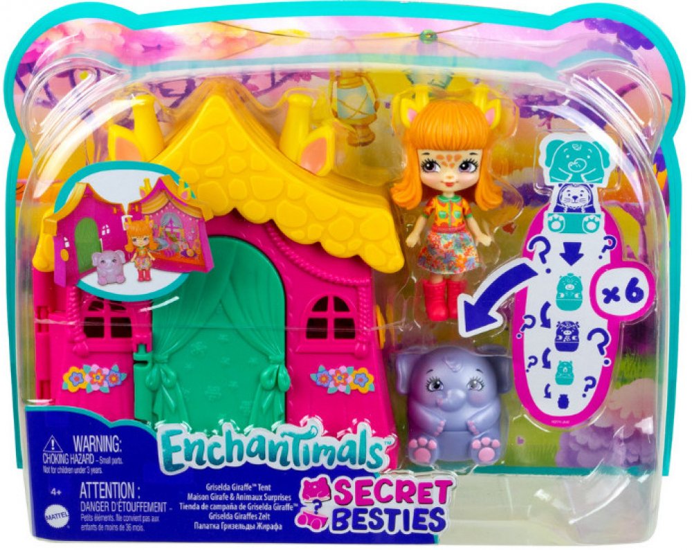 - Chata je jedinečná sada s krásnou panenkou Griselda Giraffe ze série Enchantimals Secret Besties a figurkami překvapení.