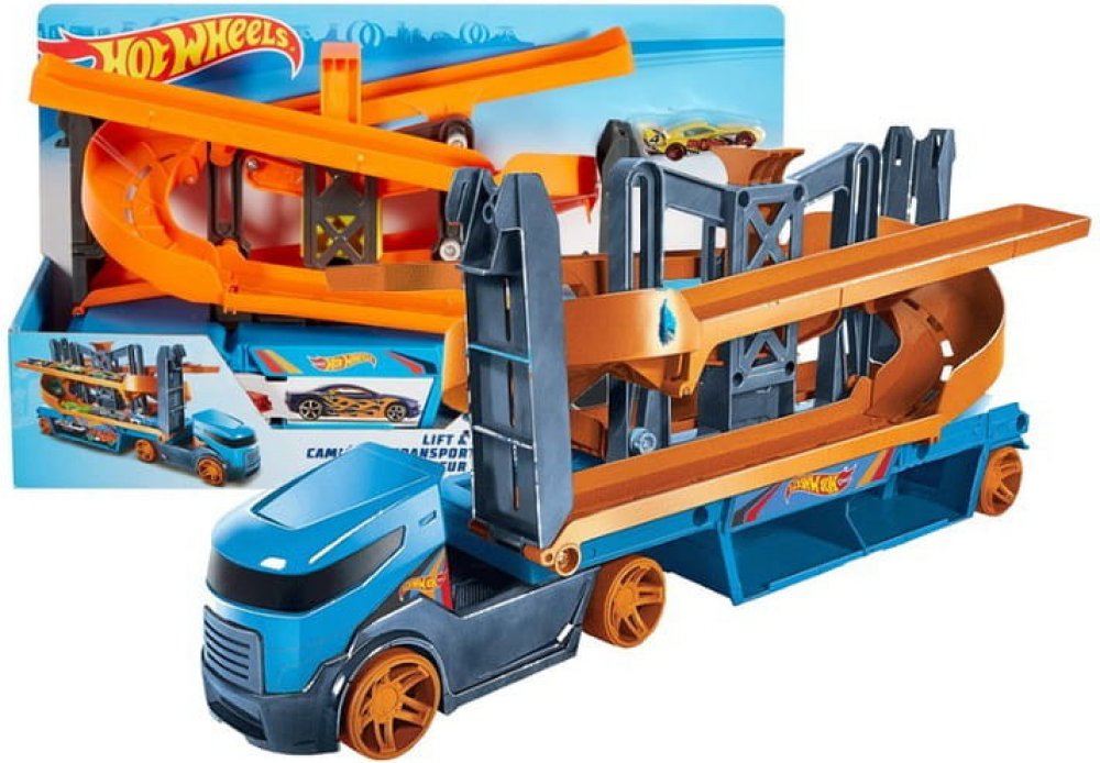 Vydejte se na cestu a vydejte se na dobrodružství se sadou Hot Wheels City Transporter - sada sjezdových tratí 2 v 1.