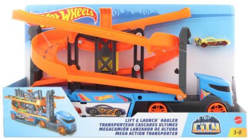 Do Hot Wheels City právě dorazil nový výkonný stroj. Může přepravovat spoustu aut a má tratě s funkcí zvedání - možnosti zábavy jsou nekonečné! Naložte až 20 aut do sady Hot Wheels City Transporter - Downhill Tracks 2v1 a přepravte je kam potřebujete. Když se tam dostanete, zatáhněte za hlavní páku. Trasy se zvednou s auty a poté je pošlou dolů na dobrodružství. Hot Wheels City Transporter - sjezd...