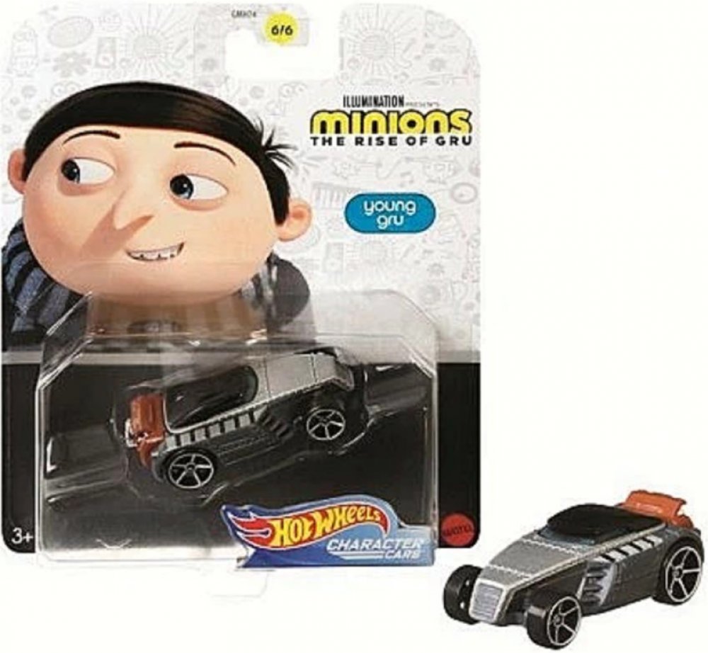 Mezi roztomilé postavy představované jako vozy Hot Wheels® v měřítku 1:64 patří Young Gru ™, Minion Carl ™, Minion Otto ™, Minion Bob ™, Minion Stuart ™ a Minion Kevin ™.