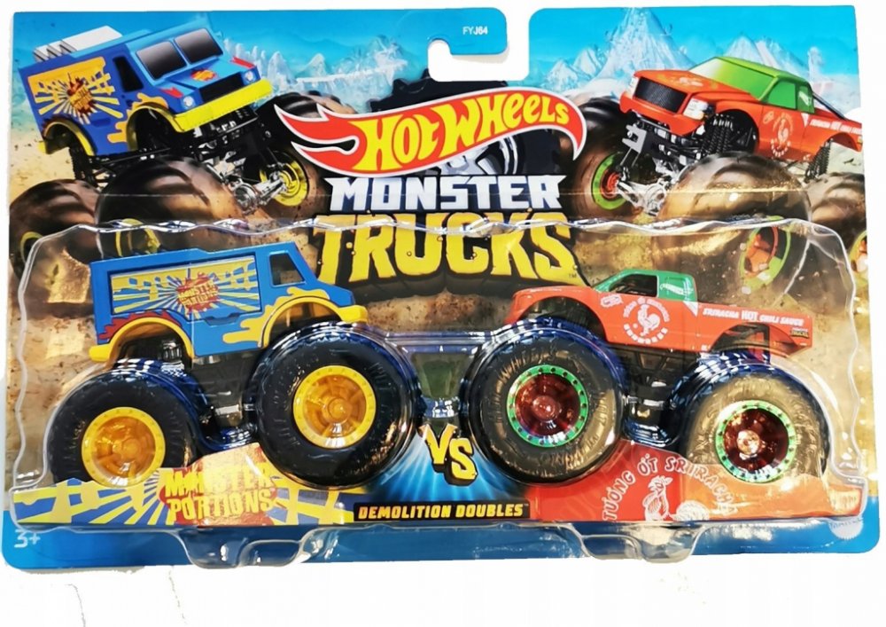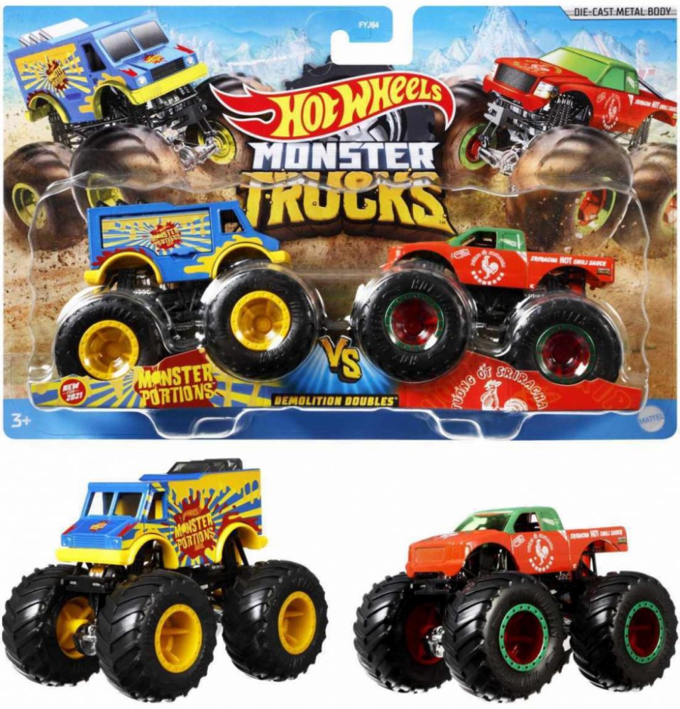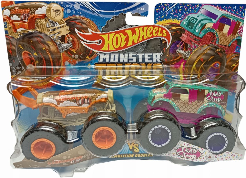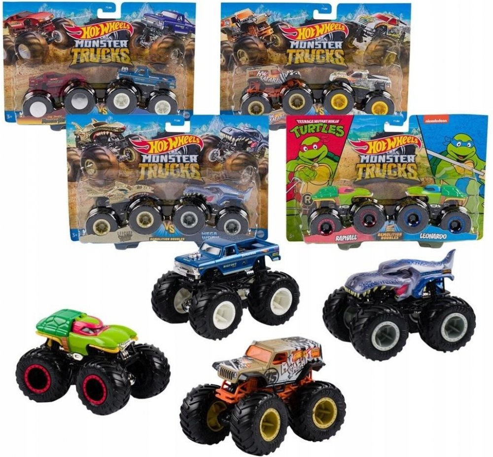 Hot Wheels® Monster Trucks Demoliční duo, to je dvojnásobná akce se dvěma Monster Trucky v měřítku 1:64 připravenými k boji! Každé ze dvou aut v měřítku 1:64 má nejen OBŘÍ kola, ale i velkou osobnost. Tyhle dvojice jsou schválně spárované tak, aby při nárazu předvedly epickou akci. V každém balení najdeš dva protivníky a jejich statistiku včetně jména, typu vozu, výkonu, jedinečného způsobu útoku ...