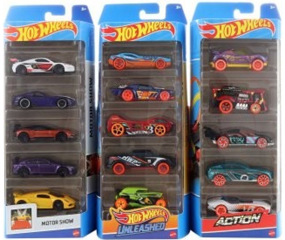 Sada 5 ks kovových autíček Hot Wheels.