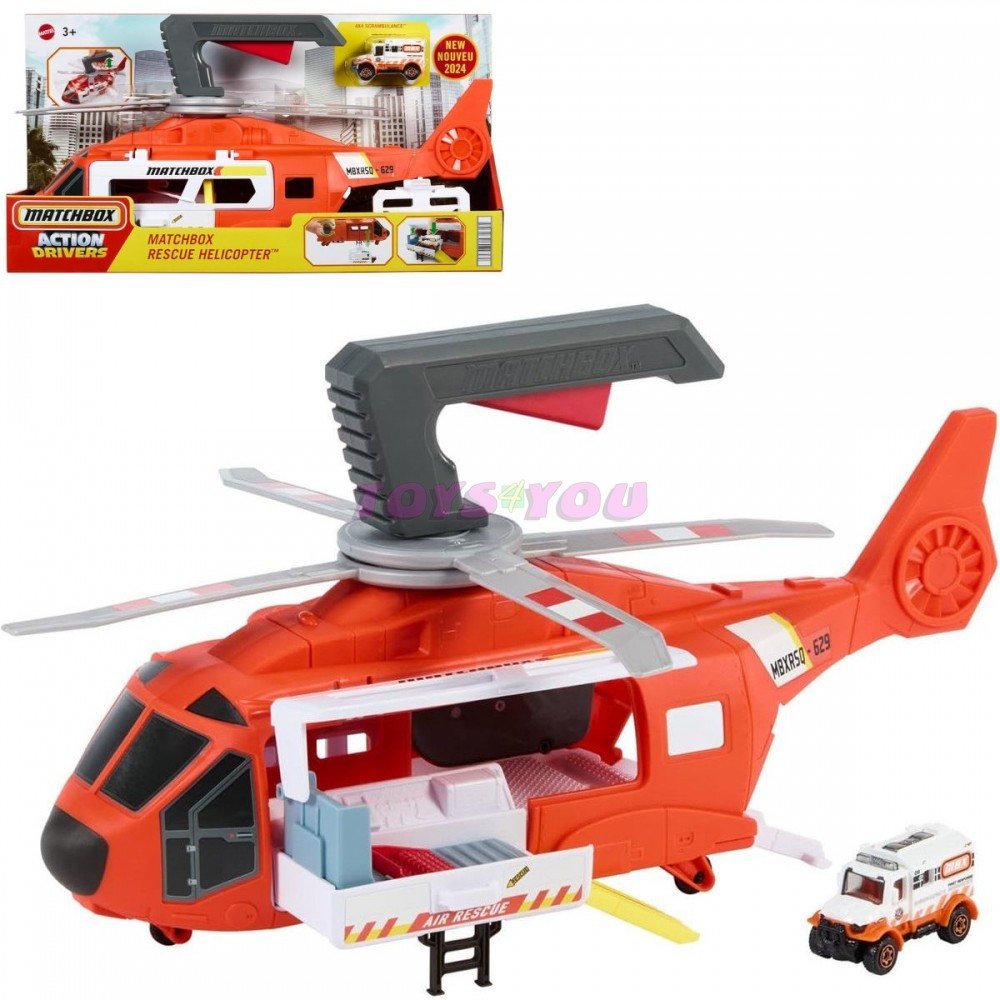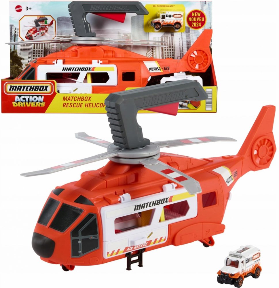 Každodenní hrdinové jsou úžasní, protože dokáží zůstat klidní v nouzových situacích. S vrtulníkem Matchbox si děti mohou hrát na to, jaké je to účastnit se záchranné operace. Vrtule vrtulníku, které měří téměř 40 centimetrů, se otáčejí stisknutím tlačítka na rukojeti a záchrana je v plném proudu.