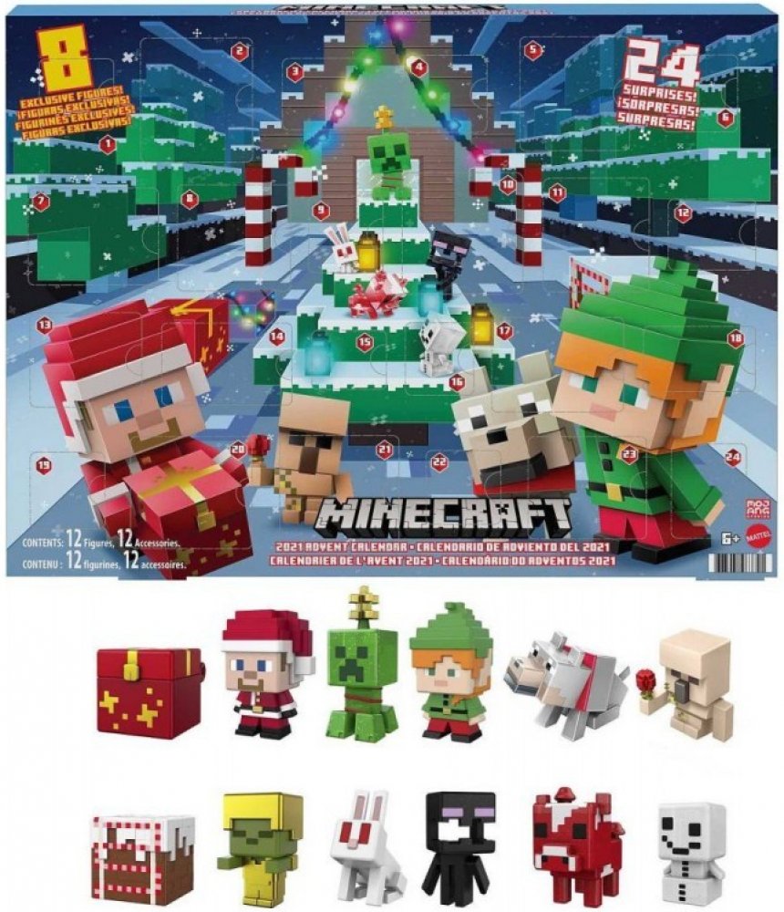 Prožijte s dětmi letos čekání na Vánoce v doprovodu Minecraft adventního kalendáře. S adventním kalendářem Minecraft se pro vás adventní období stane překvapivým zážitkem i bez každodenní čokolády, jak je v adventních kalendářích běžné. Získáte v něm figurky s velikostí cca 8cm, doplňky a samolepky.