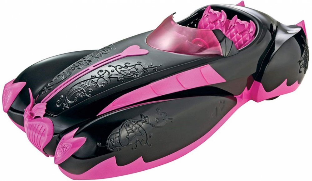 Monster High Auto pro DraculauruAuto, které dostala Draculaura ke svým šestnáctistým narozeninám.Toto auto zcela odpovídá jejímu stylu!Růžovo-černá je její oblíbená barevná kombinace, na autě se objevuje motiv srdce, který se k Draculauře velmi hodí a zároveň jsou zde kusy dělané došpičata, které nápadně připomínají Draculauřiny zuby.