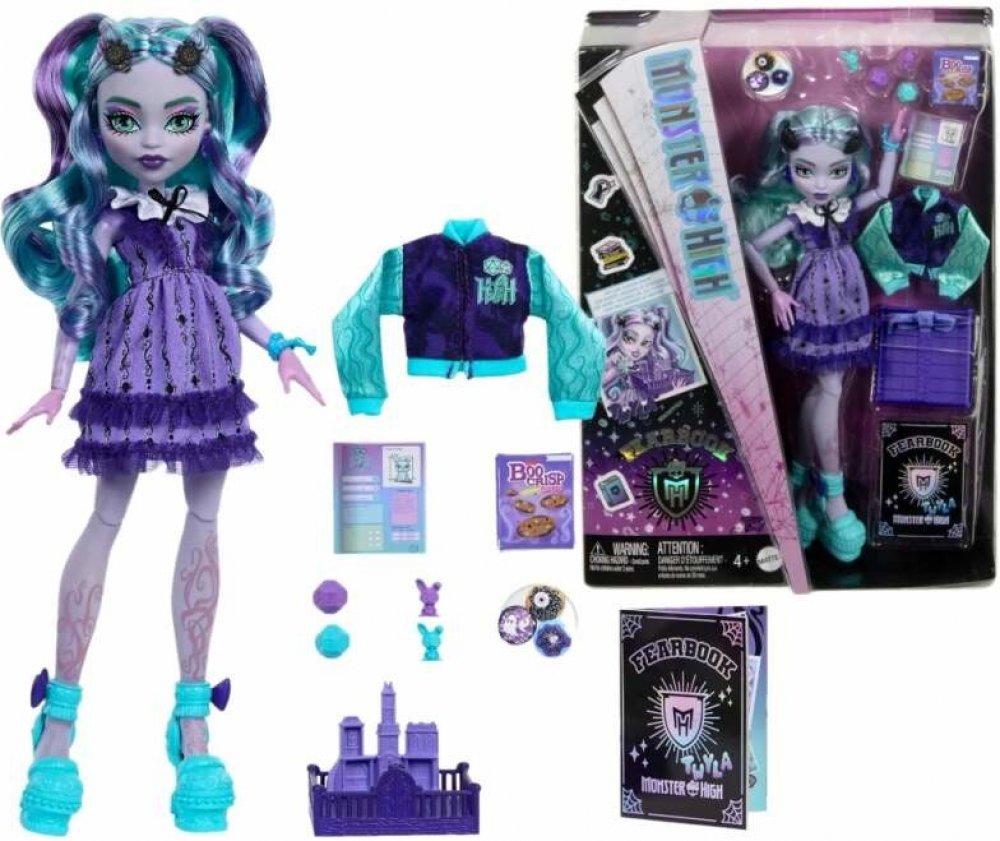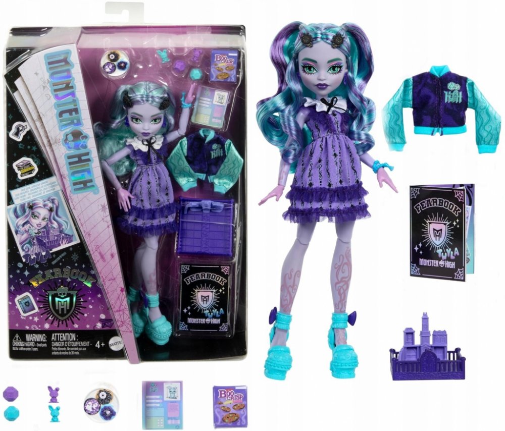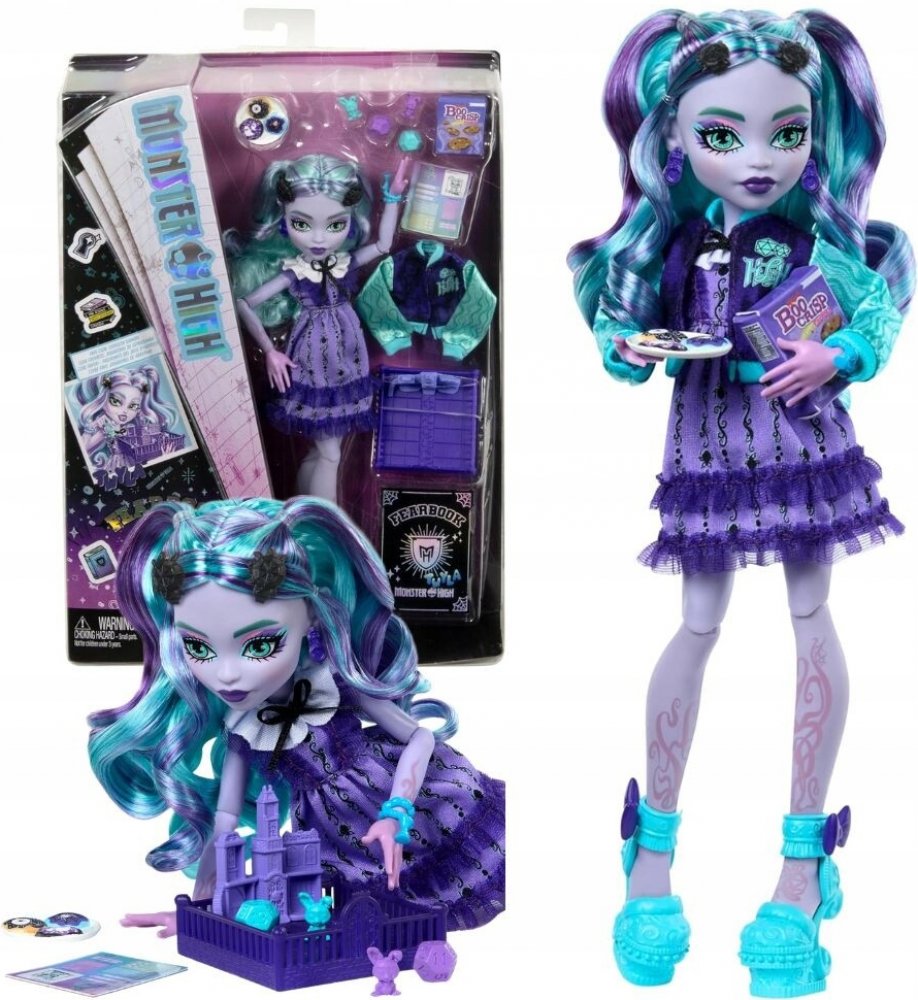 - bod bodování: Panenka Twyla je připravena zapózovat do strašidla v Strašiceu. Součástí balení je „školní rok“ a 7 doplňků pro uspořádání strašlivě úspěšných herních večerů v klubu. Panenka Monster High Twyla má na sobě fialové šaty s volánky, hmyzí sponky do vlasů a strašidelné šperky. Součástí balení je také bunda do klubu Gamerzy Grozy pro fotografování strašáka.Jako mistryně hry má Twyla vždy všechno s sebou,co je potřeba, včetně několika „občerstvení“ a deskové hry s kostkami,figurkami a návodem. V klubu hororových hráčů je vždy plno strašidelně dobré zábavy,od deskových her s partou až po prokousávání „sušenek“ během přestávky v kampani.Objevte celou řadu Fearbook Strašnik a seznamte se s dalšími školními klubyk nimž patří žáci Strašicea. Prodává se samostatně, v závislosti na dostupnosti.