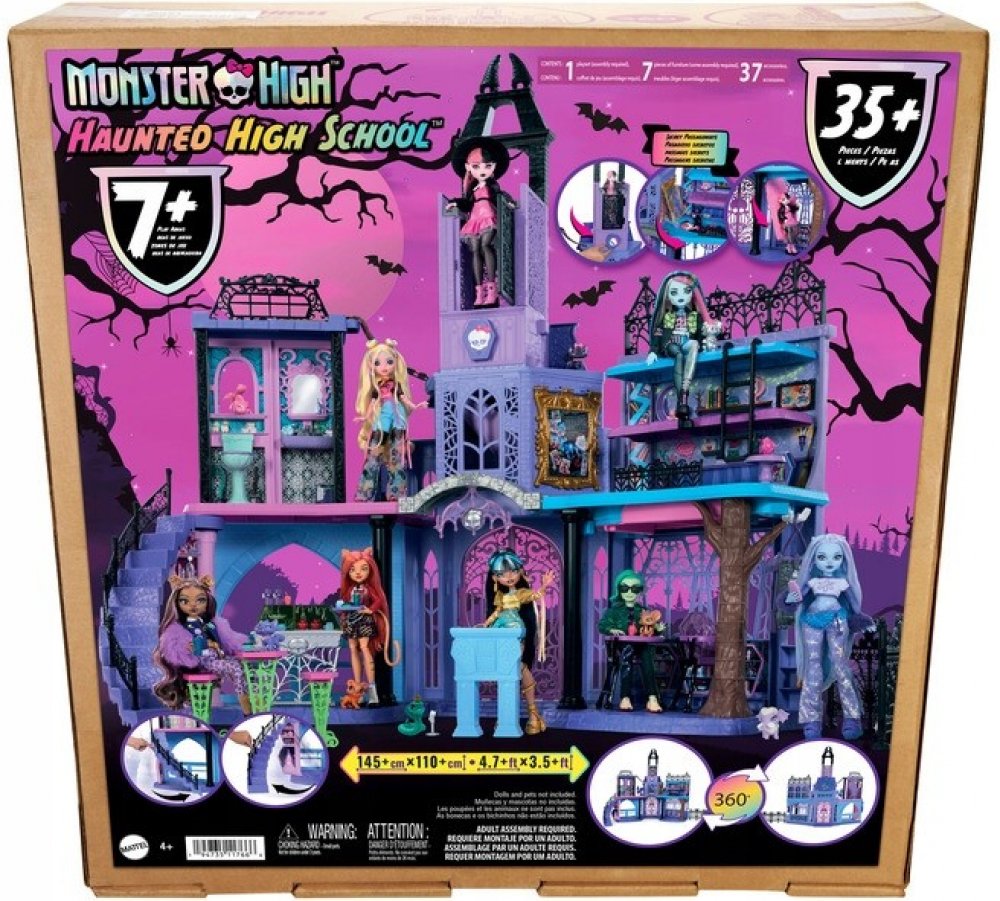 S touto Monster High™ Strašidelnou školou monsterek se školní tematikou a mnoha hracími plochami, nábytkem a spoustou tematických doplňků budou děti vymýšlet nespočet strašidelných dobrodružství.