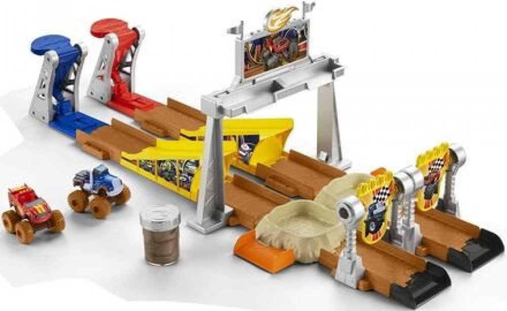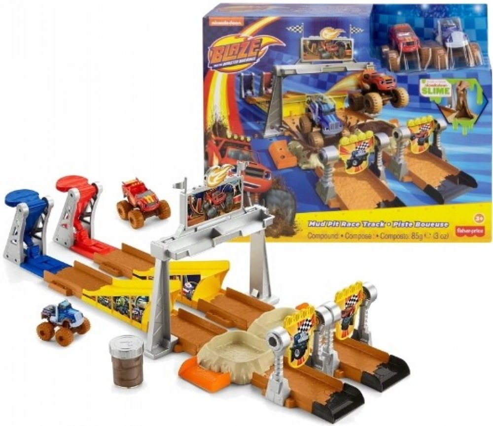 K jízdě připraven START! Se sadou na hraní Blaze and the Megamachines Mud Race od Fisher-Price mohou děti neobyčejným způsobem závodit s vozidly Blaze a Crusher. Tato závodní hrací sada má různé konfigurace, spoustu blátivé hmoty a dva vystřelovače, které vozidla vypustí po rampě a pošlou je letět přes krátery! Přeskočí obě vozidla bahno, nebo do něj jedno z nich spadne? S touto akční závodní sado...