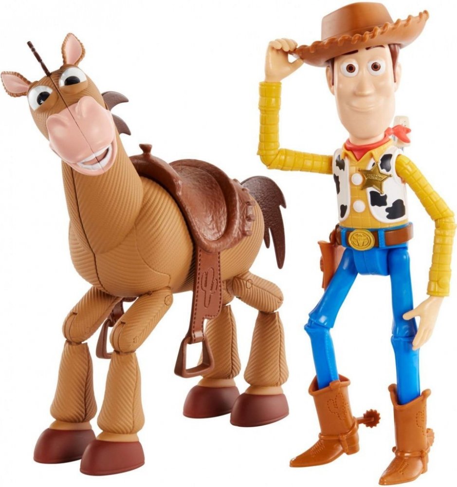 S větrem o závod! Dej šerifa Woodyho do sedla jeho statečného koně Bulíka a užij si zábavu jako ve filmech Toy Story. Postavičky jsou ohebné hned na několika místech, takže je můžeš během společných dobrodružství postavit do pozice, která nejlépe vystihuje děj ve tvém příběhu. Woody měří 23 cm a Bulík je 22 cm vysoký a 21 cm dlouhý.