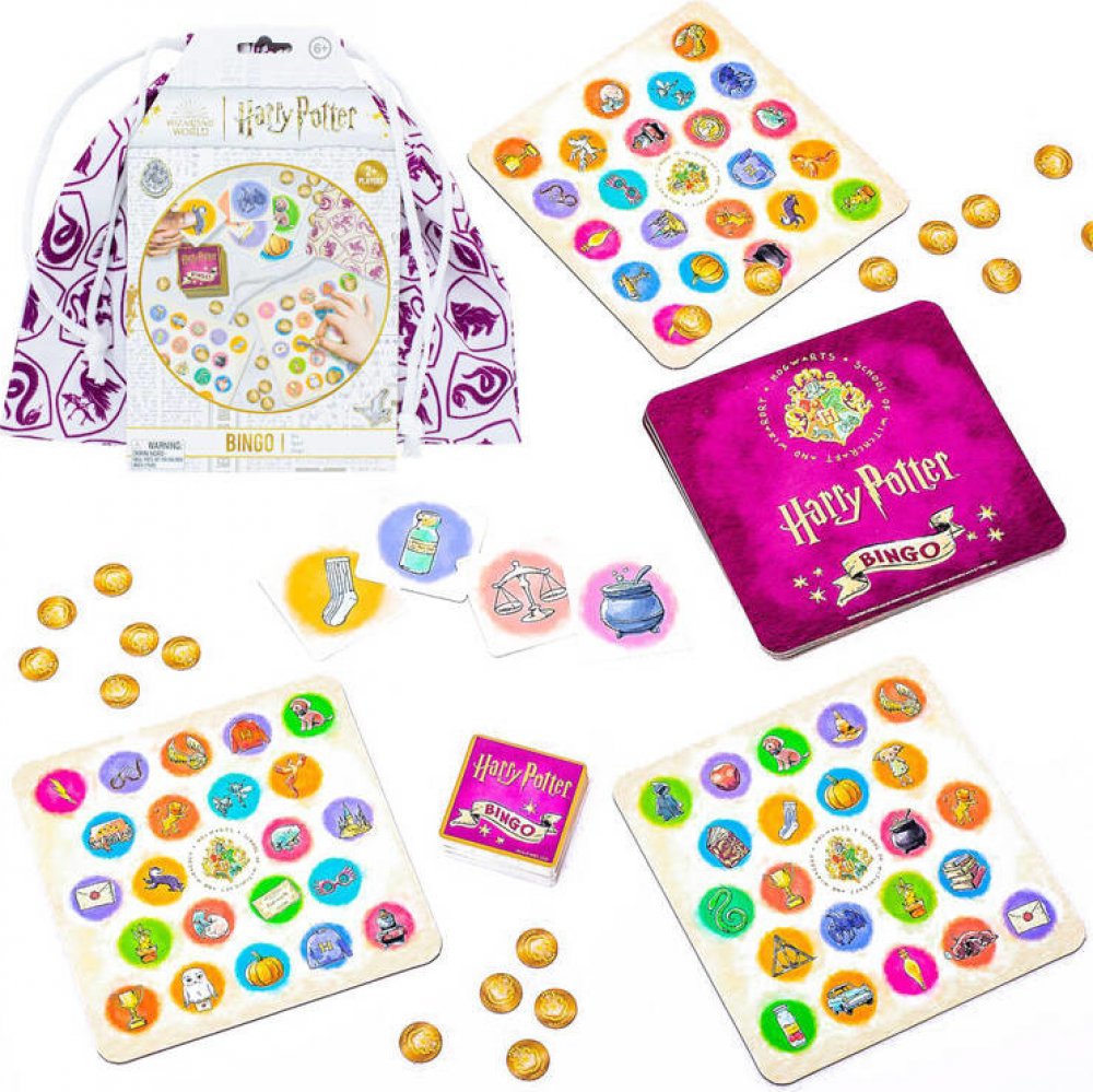 Bingo Harry Potter je zábavná a magická verze klasické stolní hry, která do hry přináší 50 kouzelných obrázků, ideální návrh pro každého fanouška jedinečných dobrodružství Harryho Pottera.V této hře najdete vše, co potřebujete pro skvělou zábavu s přáteli a rodinou.Sada obsahuje:- 6 bingo desek- 50 herních karet s krásnými ilustracemi kotlů, mandragor, maskotů kolejí Bradavic, symbolů Relikvií Smr...