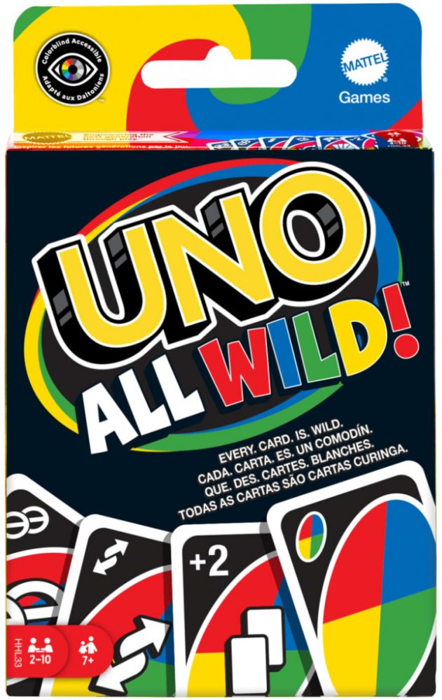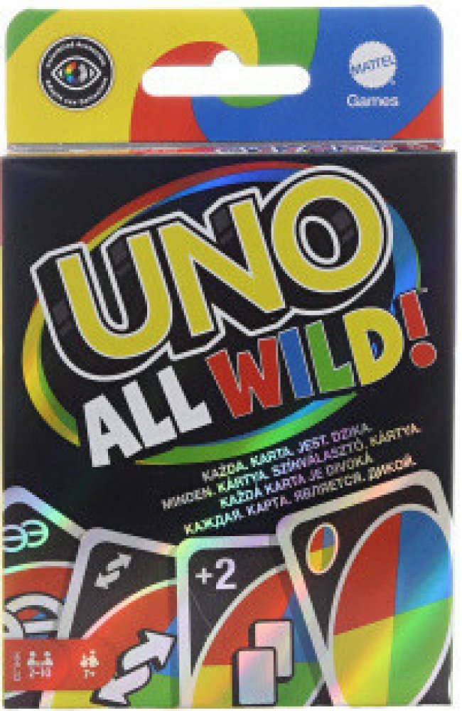 Ve hře UNO All Wild Divoké karty je každá karta divoká, díky čemuž je tato verze jedné z oblíbených rodinných her rychlá a ještě nepředvídatelnější! Nemusíte přiřazovat čísla nebo barvy jako u běžného UNO, ale není to tak snadné, jak to zní. Speciální karty zcela mění průběh hry! Najdete zde mj. divokou kartu „Postój pro dva“, díky které přeskočíte dva hráče místo jednoho, nebo divokou kartu „Vynu...