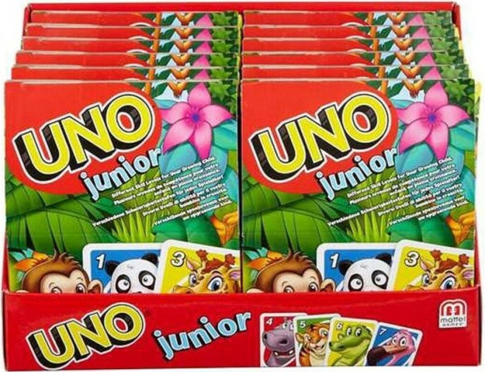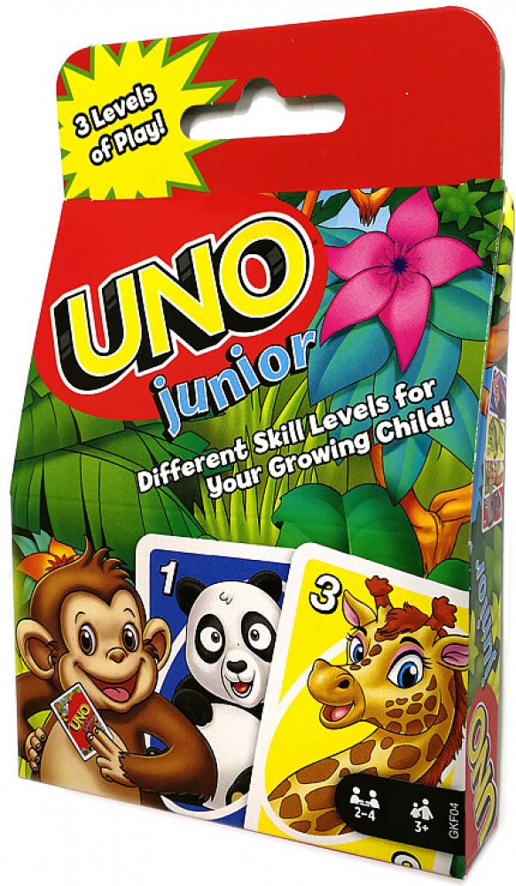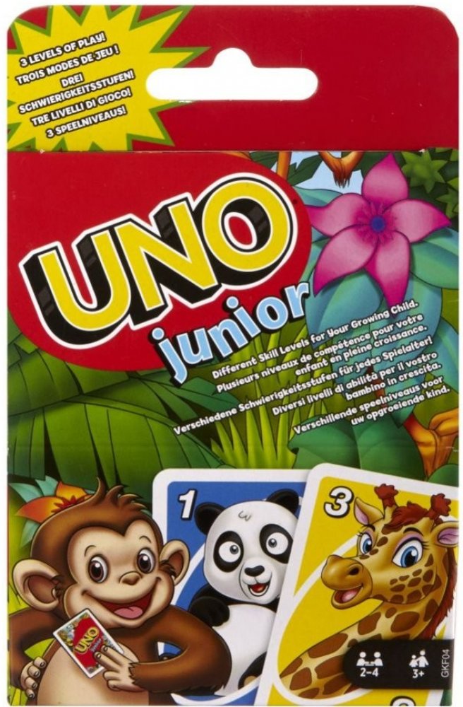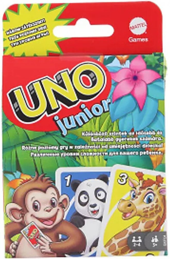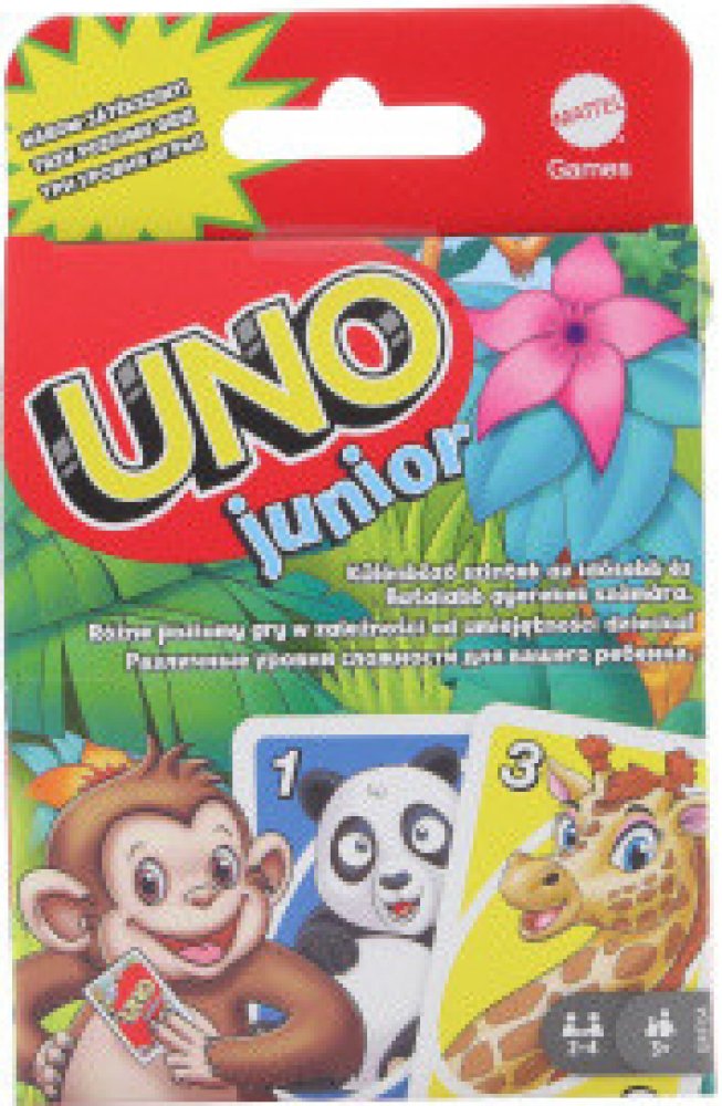 Tato zjednodušená karetní hra UNO® Junior zvířátka pro mladší hráče má několik úrovní hry, takže děti mohou s hrou růst.