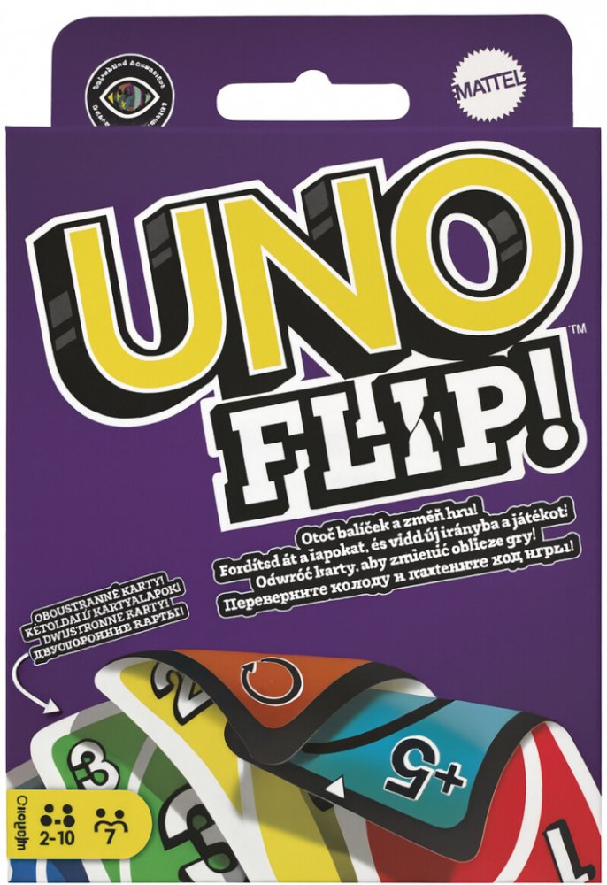 UNO FLIP! je nová, vzrušující verze oblíbené karetní hry UNO, která přináší oboustranné karty a nečekané zvraty. Každá karta má světlou a tmavou stranu, přičemž při zahrání speciální karty „FLIP!“ se celá hra obrátí a hráči hrají s druhou stranou karet.