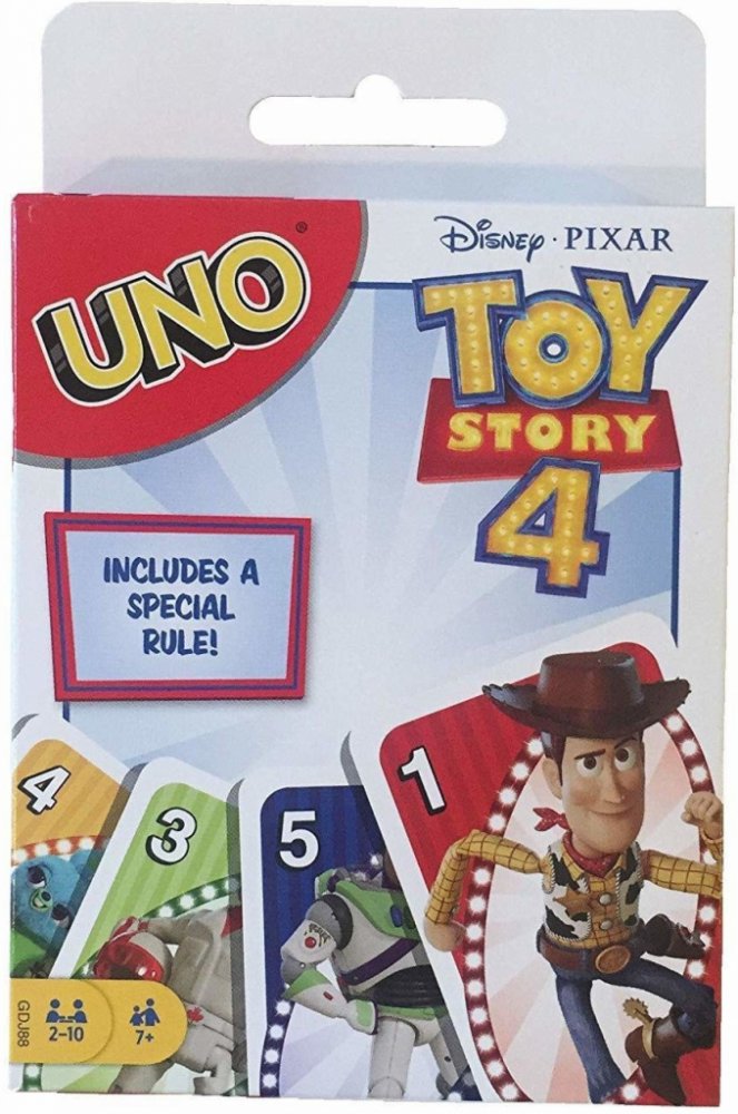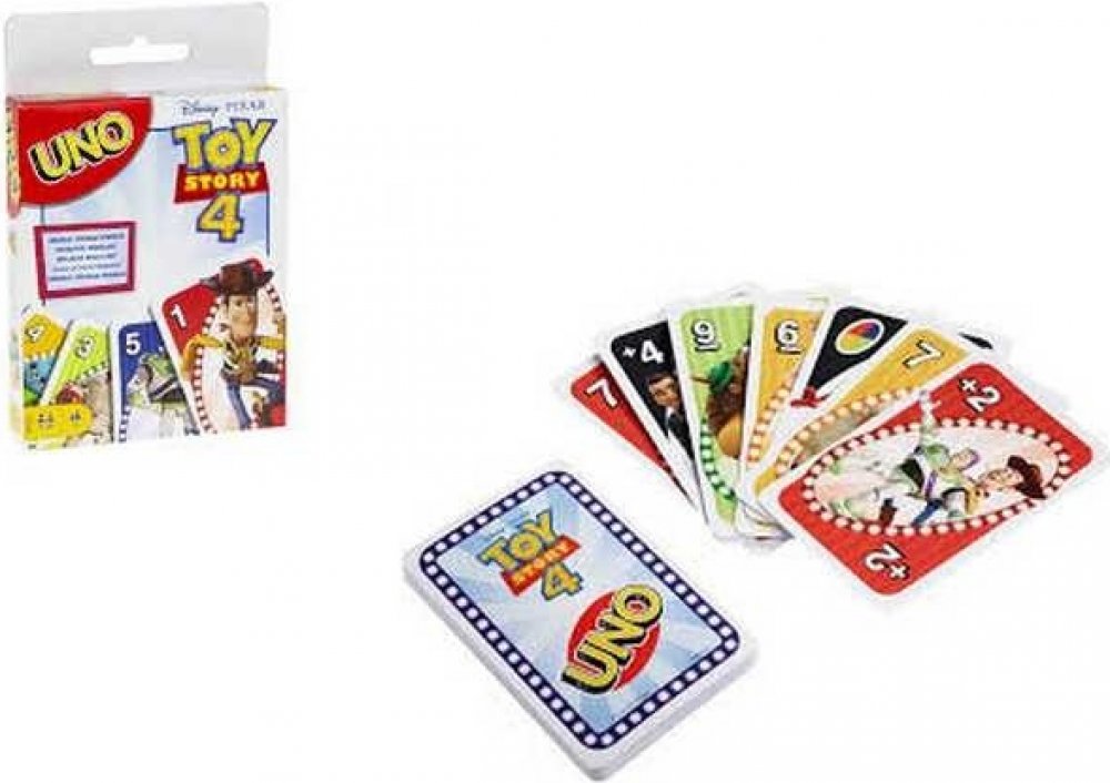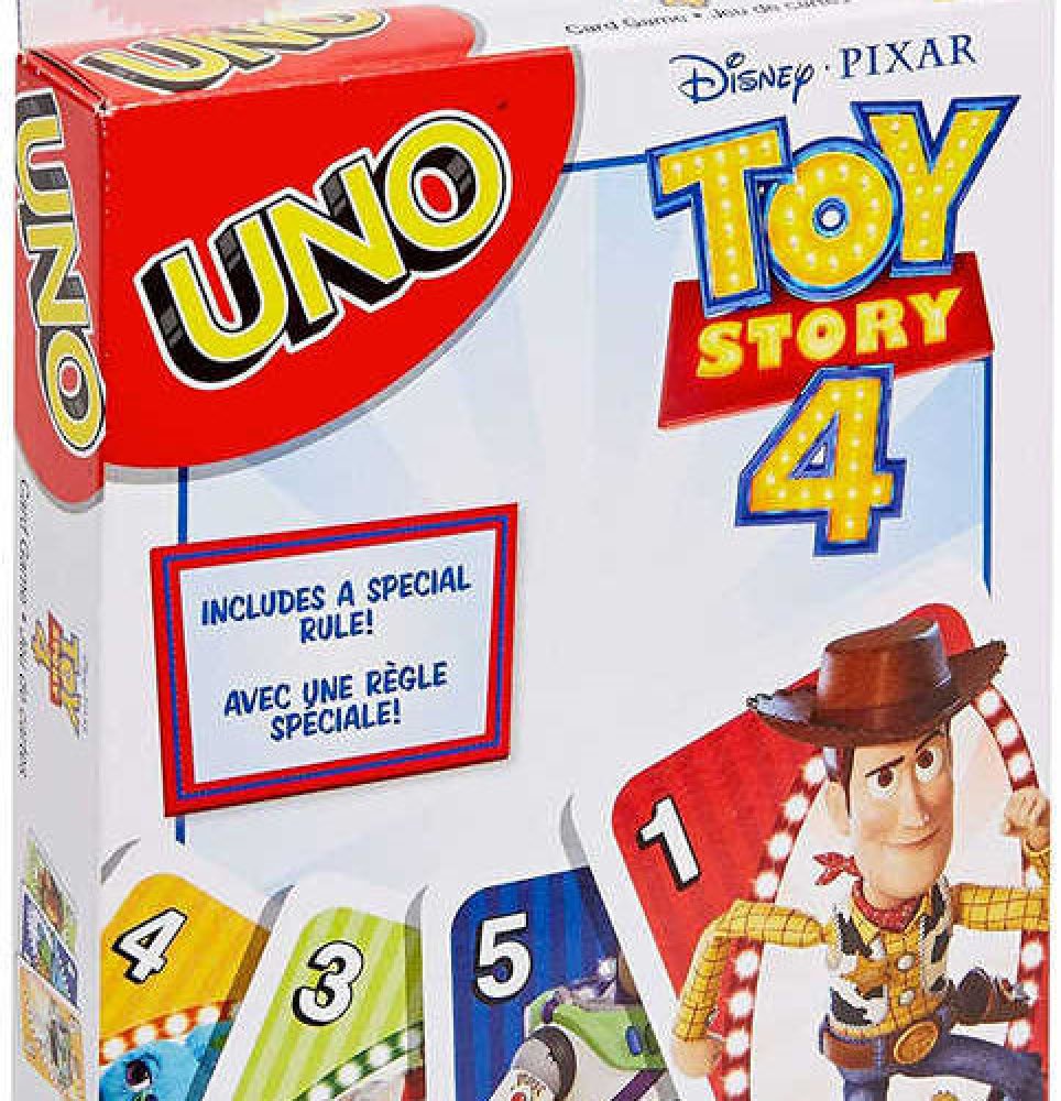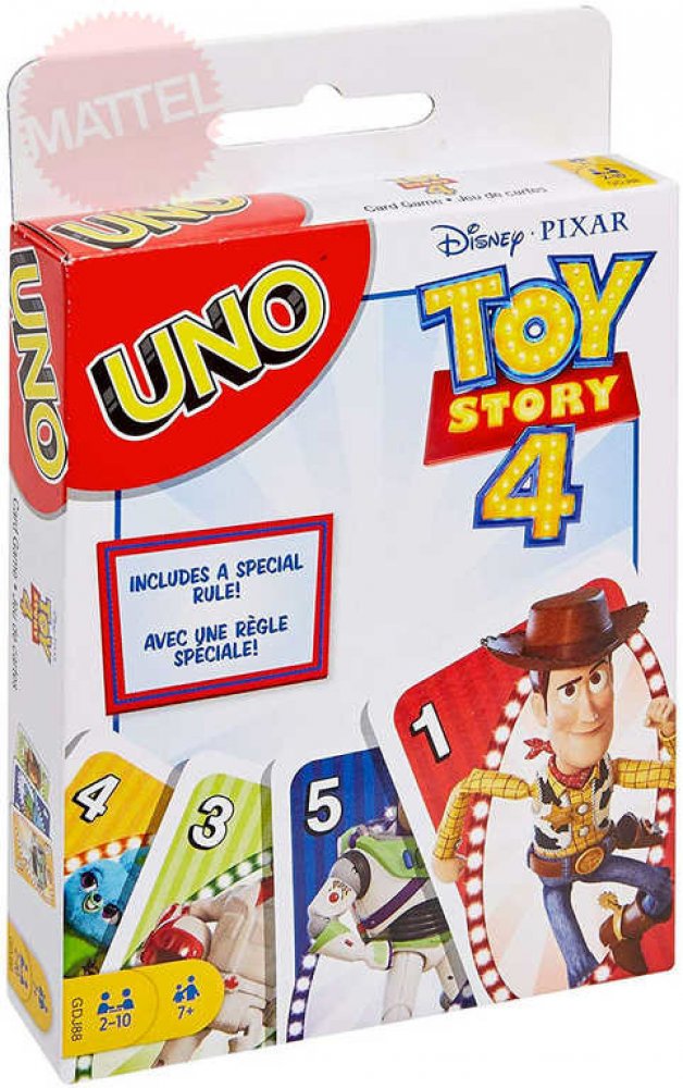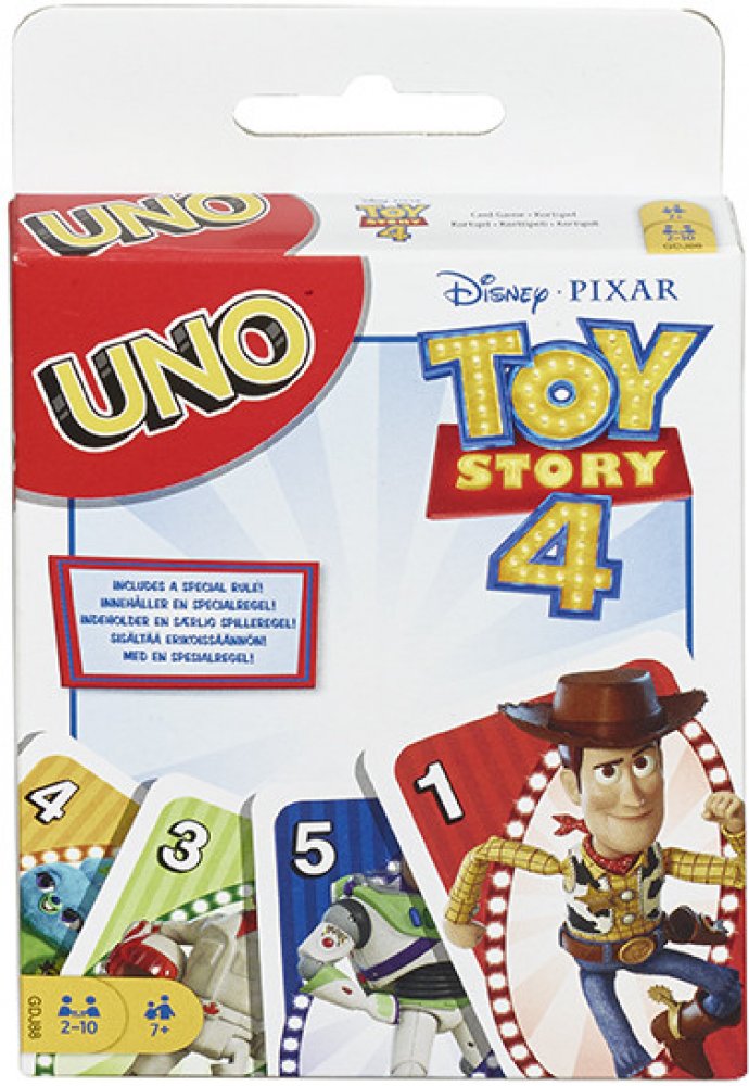 Vaše oblíbená hra UNO™ nyní přichází ve zcela novém designu. Všechny karty nyní zdobí rozkošné tematické obrázky z filmu Toy Story 4: Příběh hraček!