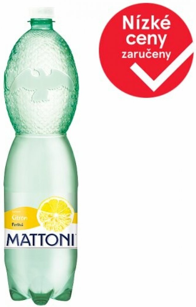Mattoni Perlivá minerální voda s příchutí citronu 1,5l Neodolatelná chuť ovoce a vyvážený obsah minerálů. Bez konzervantů a barviv. Mattoni - Příroda v tobě. Co byste měli vědět? Lokalita Kyselka. Zdroje MATTONI uvedené v povolení MZ. Chraňte životní prostředí. Recyklovatelný obal. Obsah rozpuštěných pevných látek: 525 mg/l. Perlivá. Bez konzervantů. Bez barviv. Jak skladovat a používat? Uchovávejte v chladu a chraňte před přímým slunečním světlem. Složení: Přírodní minerální voda, Cukr, Citronové aroma, Kyselina: kyselina citrónová, Regulátor kyselosti: citrát sodný, Antioxidant: kyselina L-askorbová, Mg2+ 25 mg/l, Ca2+ 84,5 mg/l, Na+ 69,9 mg/l, Cl- 12,0 mg/l, SO42- 40 mg/l, HCO3- 528 mg/l, NO3-
