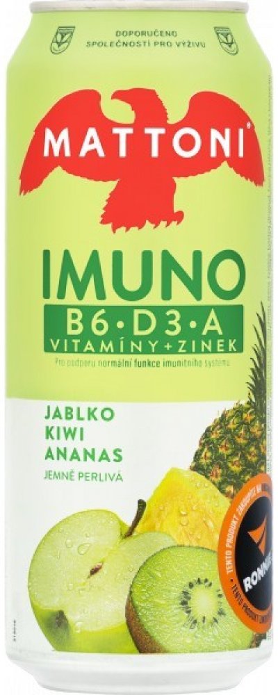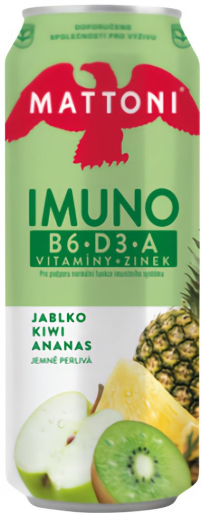 Vypitím 1 plechovky Mattoni Imuno denně doplníte 37 % DDD (doporučené denní dávky pro dospělou osobu) obsažených vitamínů a zinku.