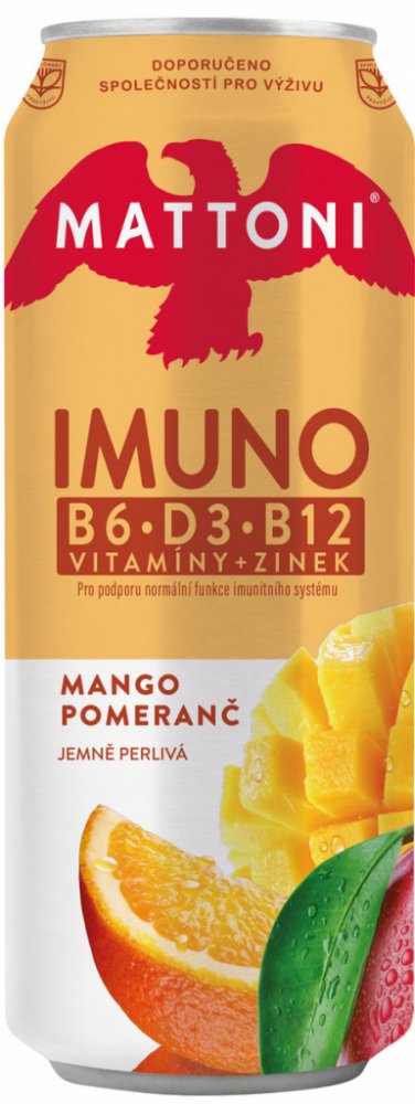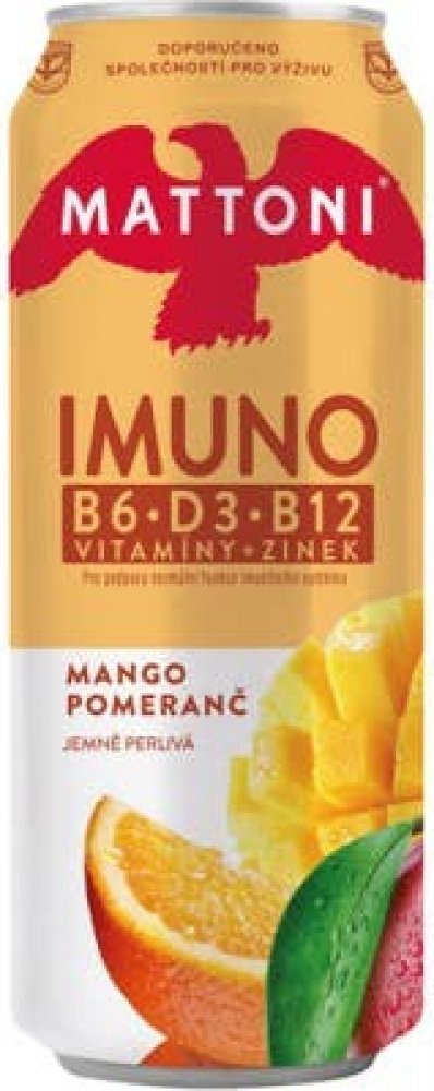 Cena se může v jednotlivých regionech lišit. -- Ochucená minerální voda s příchutí pomeranče a manga v plechu. O výrobci Panenská příroda u Karlových Varů a jejich jedinečná poloha na rozhraní Krušných a Doupovských hor dávají minerální vodě Mattoni její nezaměnitelnou chuť. Vznik minerální vody Mattoni začíná na rozhraní masivů Doupovských hor, Krušných hor a Karlovarské vysočiny. Voda zde sestupuje pod zem a mineralizuje se okolními horninami. Jemnou perlivostí ji obohatí mladý oxid uhličitý z Doupovských hor. Poslední příměsí jsou minerály Karlovarského žulového masivu. Minerální voda známá jako Mattoni pak „dozrává“ v hloubce 125 až 230 metrů. Vyvážené minerály dávají Mattoni její nezaměnitelnou chuť. Mattoni je skvělým doplňkem k jídlu či kávě, neboť minerály očišťují chuťové pohárky, a tak vše, co si dáte po Mattoni, chutná intenzivněji. - .