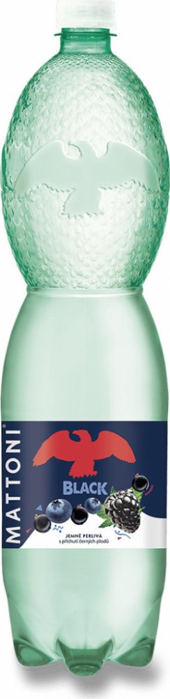 Chuťově perlivá minerální voda s příchutí černého ovoce. Název zdroje: Mattoni.