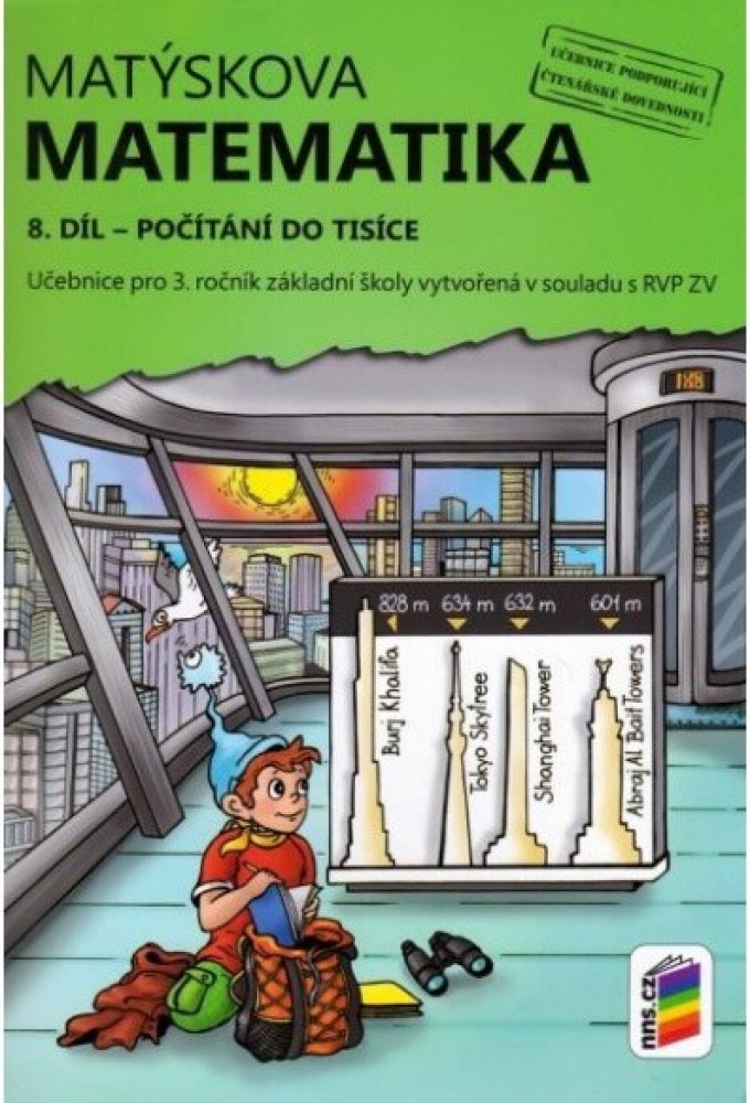 Osmý díl učebnice (POČÍTÁNÍ DO TISÍCE) je zaměřen zejména na počítání v číselném oboru 0–1000. Učivo zahrnuje početní operace se závorkami a bez závorek, jednoduché příklady na násobení a dělení mimo rozsah malé násobilky, násobení a dělení 10 a 100, dělení se zbytkem, vyvození písemného násobení, zaokrouhlování na desítky a stovky, jednoduché převody jednotek a zlomky. NNS3-36