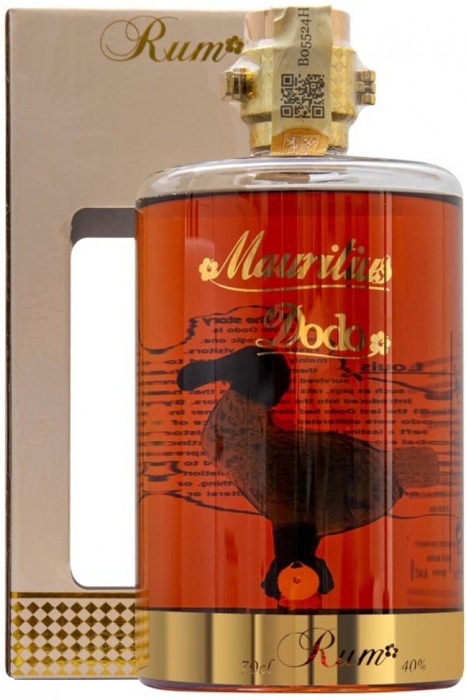 V každé láhvi je vsazen pták DODO který žil na Mauriciusu do 18 století než byl vyhuben.