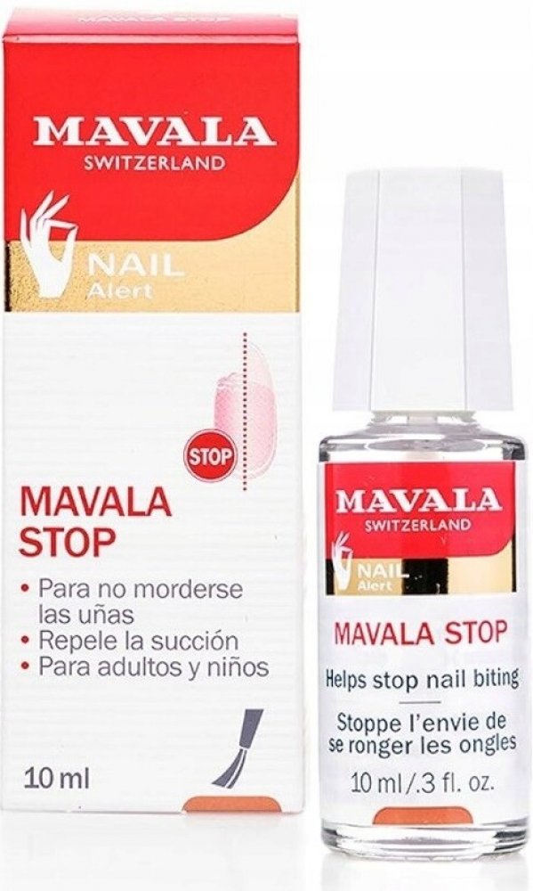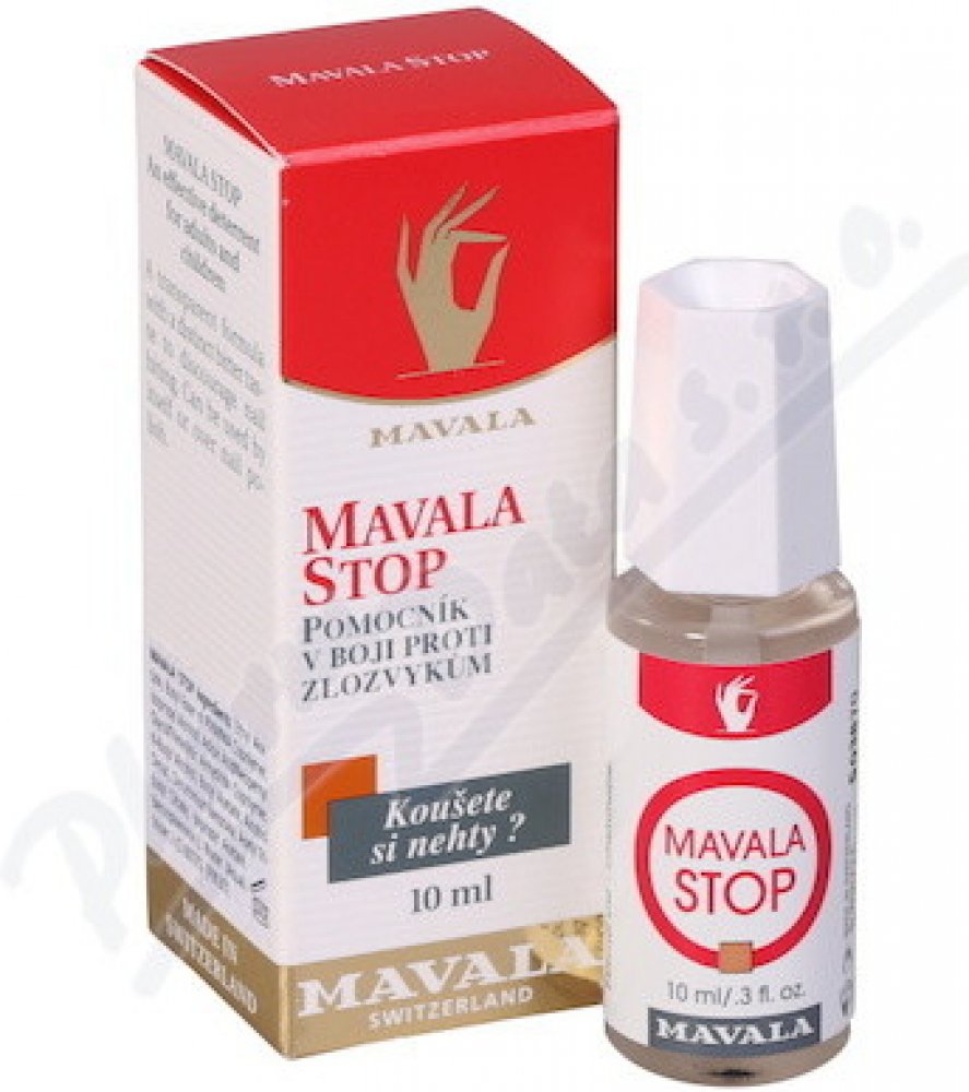Účinný přípravek v boji proti zlozvyku kousání nehtů pro děti i dospělé.MAVALA STOP představuje profesionální přípravek v boji proti kousání nehtů. Kousání nehtů může způsobit deformaci ústní dutiny a vyčnívání zubů.MAVALA STOP je neškodný, bezbarvý přípravek s hořkou pachutí, který zabrání okousávání nehtů. Nezabarvuje prsty.