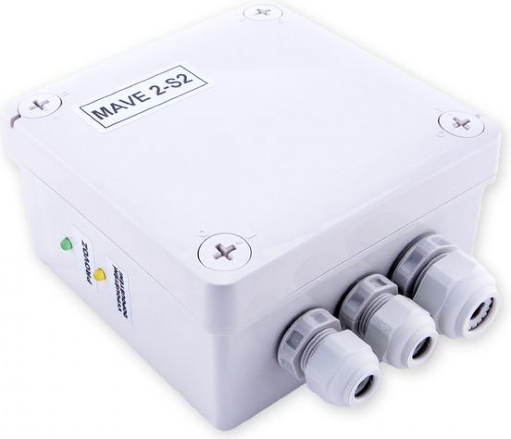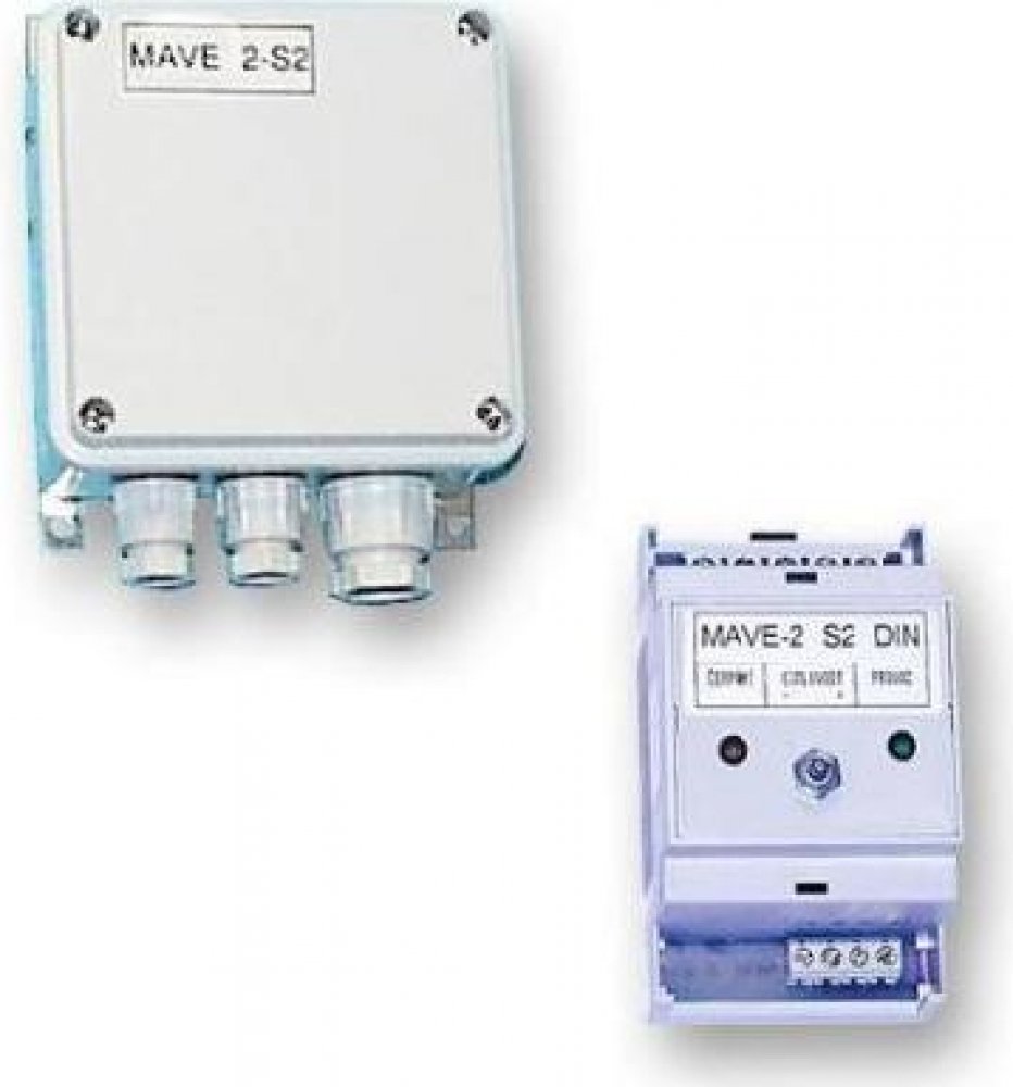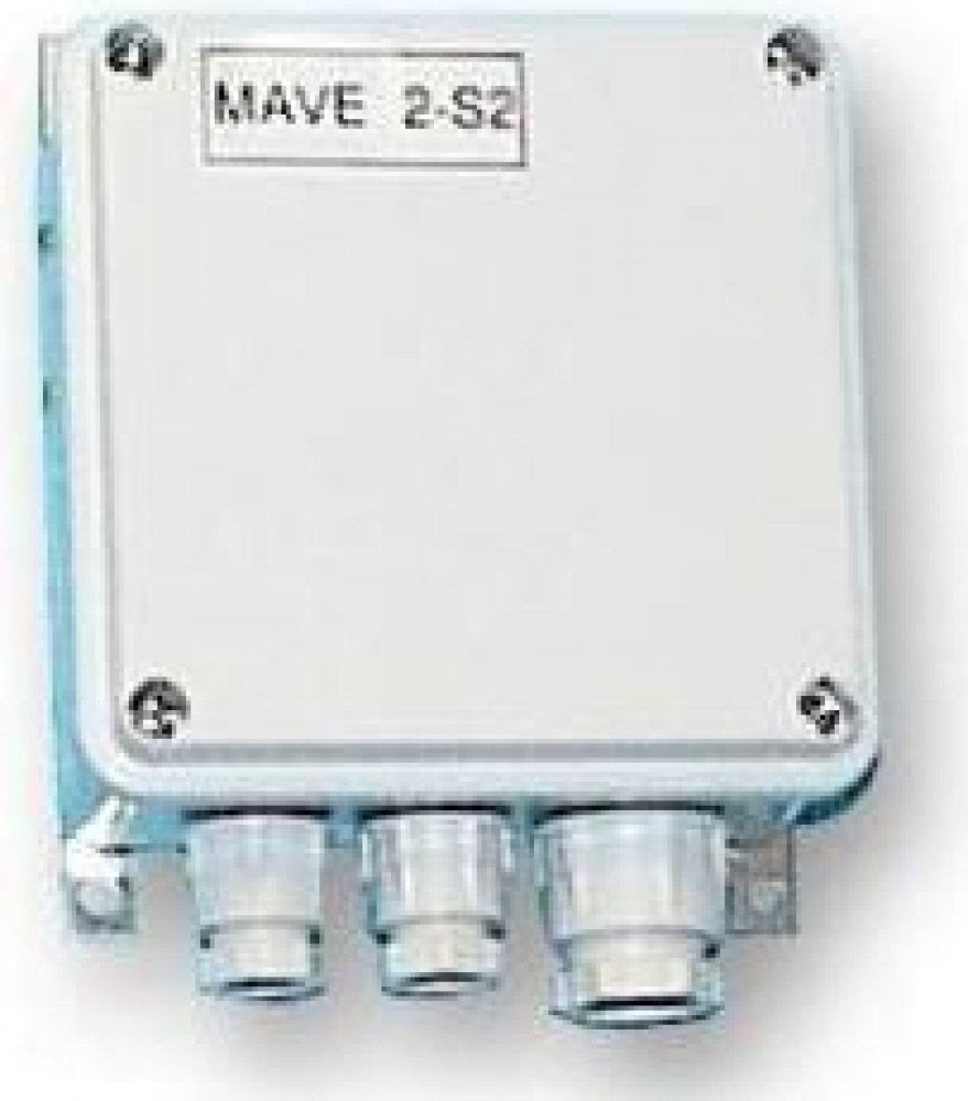 vlastnosti:Pro připojení dvou sond, vzdálenost sond určuje spínací diferenciProvedení pro vnější montáž nebo lištu DIN 35 mm.Technické údaje:Napájecí napětí ........ 230V ACPříkon ................. 3 VAVýstup ................. přepínací kontakt reléZatížení kontaktu ...... 250V/5AVstupní citlivost ...... 5-100 kOhmIndikace ............... LEDRozměry S2 ............. 110x110x60 mm , 3MHmotnost ............... 0,33kg , 0,16kgMateriál obalu ......... plastKrytí .................. IP56 , IP20schéma:Popis činnosti snímačů MAVE 2-S1, MAVE 2-S2 (ev. DIN)Snímač pracuje na principu spínání relé v závislosti na přítomnosti hladiny kapaliny na sondě. Kapalina vytvoří při dotyku s elektrodami vodivé spojení. Tento stav je přiveden do snímače. Na jeho kontaktech dostaneme informaci o přítomnosti kapaliny na snímací sondě. Maximální hladina (obr. č. 1): Relé ve snímači je v klidovém stavu. Na přepínacím kontaktu jsou spojeny vývody 6-7. Při dostoupení vody k sondě relé přitáhne a přepínací kontakt rozpojí vývody 6-7 a spojí vývody 5-6. Minimální hladina (obr. č. 1):Relé ve snímači je přitažené. Na přepínacím kontaktu jsou spojeny vývody 5-6. Při ztrátě vody na sondě relé odpadne a přepínací kontakt rozpojí vývody 5-6 a spojí vývody 6-7. Pro dopouštění nebo vyčerpávání nádrží se použije typ MAVE 2-S2 se dvěma sondami, zapojení podle obrázku č. 2. U obou zapojení je namontována sonda S1 jako horní a S2 jako spodní. Dopouštění nádrže (obr. č. 2): Při zapnutí snímače zůstane relé v klidovém stavu a přepínací kontakt spojeny vývody 6-7, zapnuto dopouštění. Při dostoupení vody k horní sondě relé ve snímači přitáhne, přepínací kontakt rozpojí vývody 6-7 a je ukončeno dopouštění. Relé zůstane přitažené do doby, než dojde k poklesu hladiny pod spodní sondu. Pak relé odpadá, spojí kontakty 6-7, zapne dopouštění a celý cyklus se opakuje. Vyčerpávání nádrže (obr. č. 2 ): Při zapnutí snímače zůstane relé v klidovém stavu. Při dostoupení vody k horní sondě relé ve snímači přitáhne, přepínací kontakt spojí vývody 5-6 a spustí vyčerpávání. Relé zůstane přitažené do doby, než dojde k poklesu hladiny pod spodní sondu. Pak relé odpadá, přepínací kontakt rozpojí vývody 5-6 a přeruší vyčerpávání. Relé zůstane odpadlé do doby než voda dostoupí k horní sondě a opět spustí vyčerpávání.