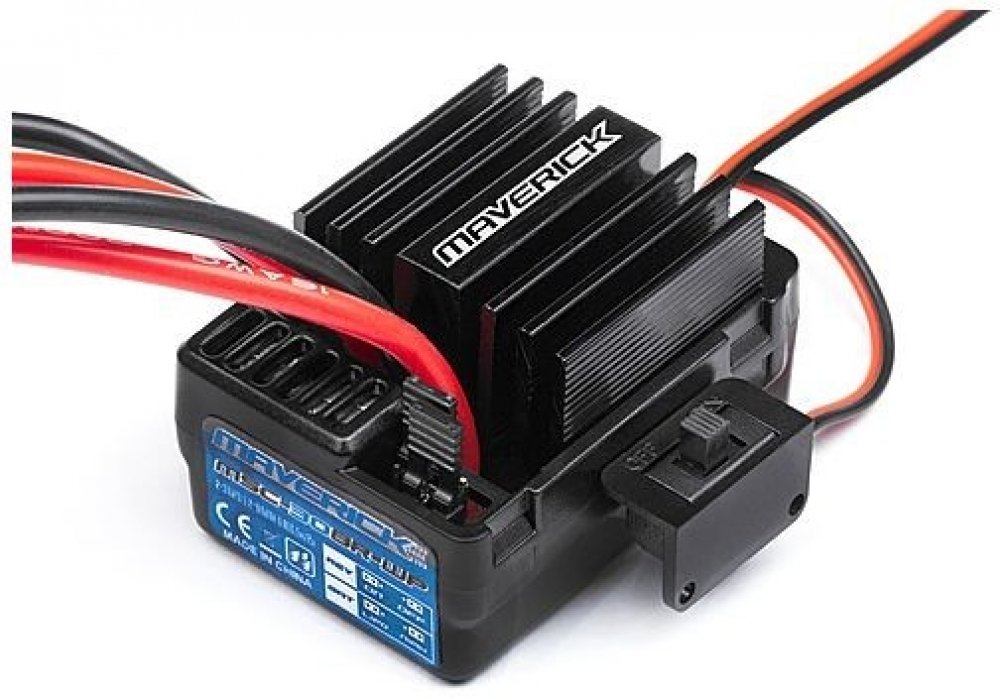 Maverick MSC-30BR-WP stejnosměrný regulátor Maverick. Regulátory otáček a spínače. Maverick MSC-30BR-WP je voděodolný stejnosměrný regulátor otáček, který je vhodný pro RC auta všech typů v měřítku 1:10. Zvládne bez problémů LiPo 2S a 3S nebo 5–9článkové NiMH akumulátory. Regulátor je vybaven funkcí LiPo cut-off.