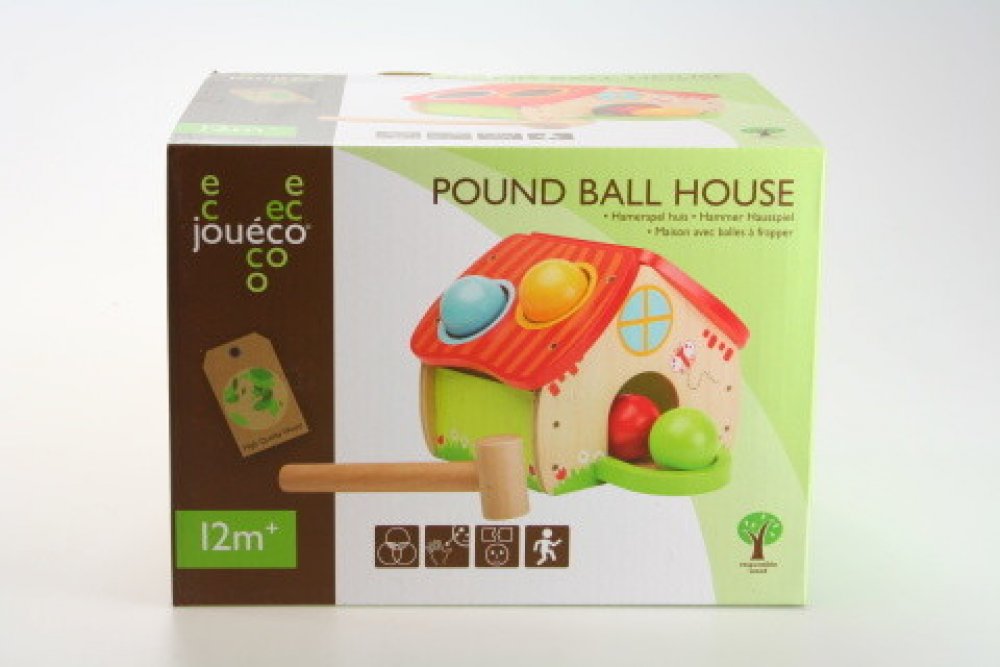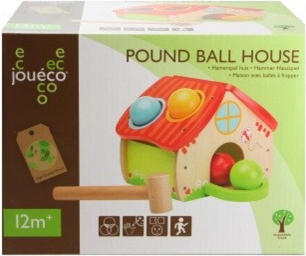 Obsah balení: domeček, kladívko, 4 kuličky