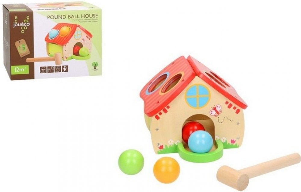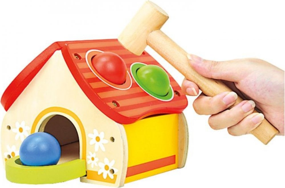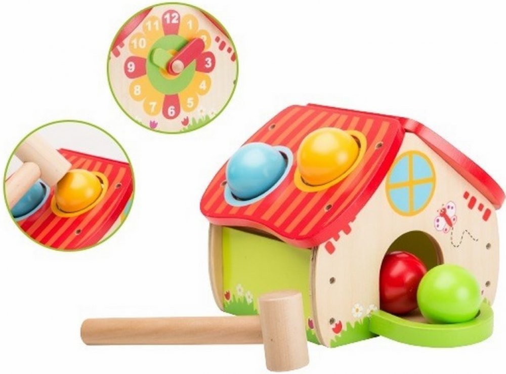 Zábavná hračka - zatloukací domek s kuličkami pro malé děti. Zatloukačka podporuje dětskou motoriku a koordinaci pohybů. Zatloukačka podporuje rozvoj jemné i hrubé motoriky, koordinuje pohyby, přesnost, odhad vzdálenosti a trpělivost vašich dětí.