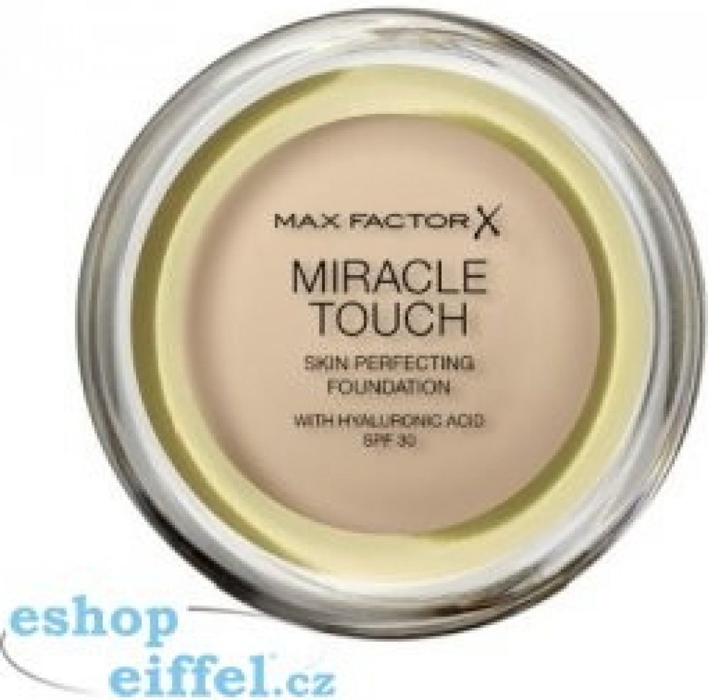 Pomocí make-upu **Max Factor Miracle Touch Skin Perfecting** **dosáhnete dokonalé pleti** bez nedokonalostí, nerovnoměrného tónu pleti a nežádoucího lesku. Make-up má **dlouhou výdrž**, vypadá přirozeně a chrání pokožku před slunečním zářením.