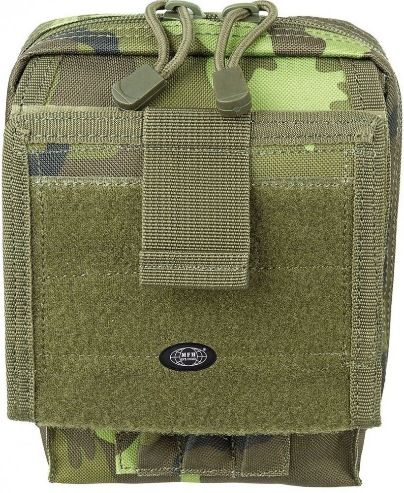 malá sumka o rozměrech 14x17 cm na klíče, mobil, malou peněženku nebo jiné drobné věci. zcela rozložitelný s 2cestný zipem velká, průhledná přihrádka na karty odnímatelné pomocí suchého zipu Uvnitř 2 velké zasouvací přihrádky 1 našitá přední kapsa se 3 držáky na pera a 2-násobným odklápěcím víkem 2 průhledné přihrádky 2 odnímatelná poutka pro připevnění Molle s patentem na zadní straně suchý zip cca 12 x 10 cm rozměry přihrádky na karty: cca 31 x 29 cm rozměry: cca 14 x 17 cm Materiál: 100% polyester