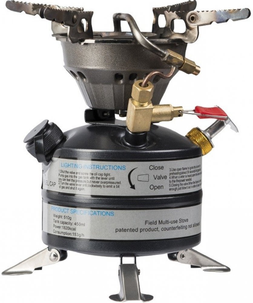 Kvalitní výkonný benzínový vařič pro outdoorové vaření ve všech podmínkách i ve velkém větru. Rozklápěcí nožičky pro lepší stabilitu. Součástí je také čistící jehla a transportní taška. • Vysoký tepelný výkon • Držák misky 19 cm • Spotřeba: 153 g/h • Kapacita nádrže: 450 ml • Výstup: 1820 kcal