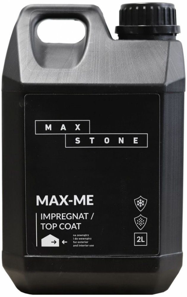 Impregnace MAX–ME 2l značky Max Stone přestavuje silikonovou emulzi, která slouží především k impregnaci sádrového a fasádního (betonového) kamene. Je vhodná i pro porézní stavební materiály, například sádrové bloky, cementové dlaždice nebo pórobeton. Emulze se používá i jako ochrana cemento–vápenných a akrylátových omítek proti vlhkosti. Impregnace chrání povrchy vůči povětrnostním vlivům a nečistotám a zvyšuje jejich odolnost. Díky silikonové emulzi získají obklady perleťově křišťálový lesk. Vydatnost je 6–8 m²/l.