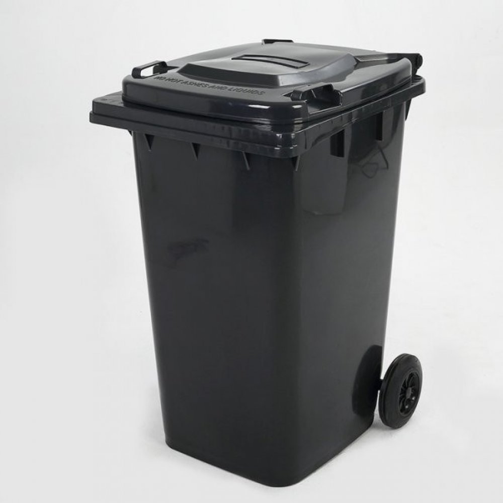 Max popelnice 240L černá s kolečky Kvalitní plastová popelnice na komunální odpad v tmavě šedé barvě s objemem 240 litrů boduje díky snadné manipulaci, za kterou vděčí kolečkům a nízké hmotnosti. Madla na popelnici jsou umístěna tak, abyste ji mohli uchopit ze všech stran. Velmi kvalitní plastová popelnice 240 na komunální odpad boduje díky snadné manipulaci. Kolečka a nízká hmotnost zajišťují její jednoduché a bezproblémové přemísťování. Víko je navrženo pro snadnou obsluhu popelnice, madla na něm jsou umístěna tak, abyste mohli popelnici lehce uchopit ze všech stran. Tyto plastové popelnice jsou vyrobeny z kvalitního plastu, který odolává mechanickému poškození. Její hladké a zaoblené plochy zabraňují ulpívání nečistot. Kolečka popelnice plastové zajištují jednoduchou a tichou manipulaci, díky nim ji snadno přemístíte i jednou rukou, aniž byste museli vynakládat sílu, jako u starších druhů plechových popelnic. Varování: Nevhazujte horké předměty a tekutiny! Parametry: Barva – tmavě šedá Hmotnost - 12 kg Objem - 240 l Rozměry Š x V x H – 58 x 100 x 72 cm Obsah balení: Popelnice plastová 240 l Popelnice je vyrobena dle norem: EN840-1:2004, EN840-5:2004, EN840-8:2004