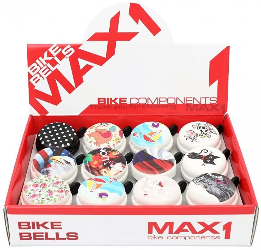 Stylový paličkový zvonek pro jízdní kola, průměr 57 mm, set 12 kusů, balení MAX1