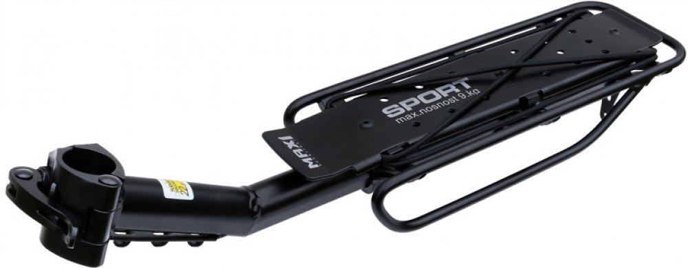 - nosič je svařen z hliníkové trubky, nýtované platformy s Al rámem a otevíracího klipu