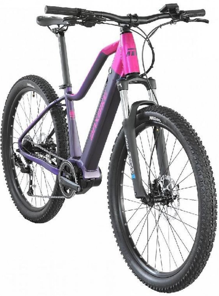 Maxbike horská dámská 2024 80 km středové Bafang odpružená přední vidlice 100 mm hliníkové 65 Nm