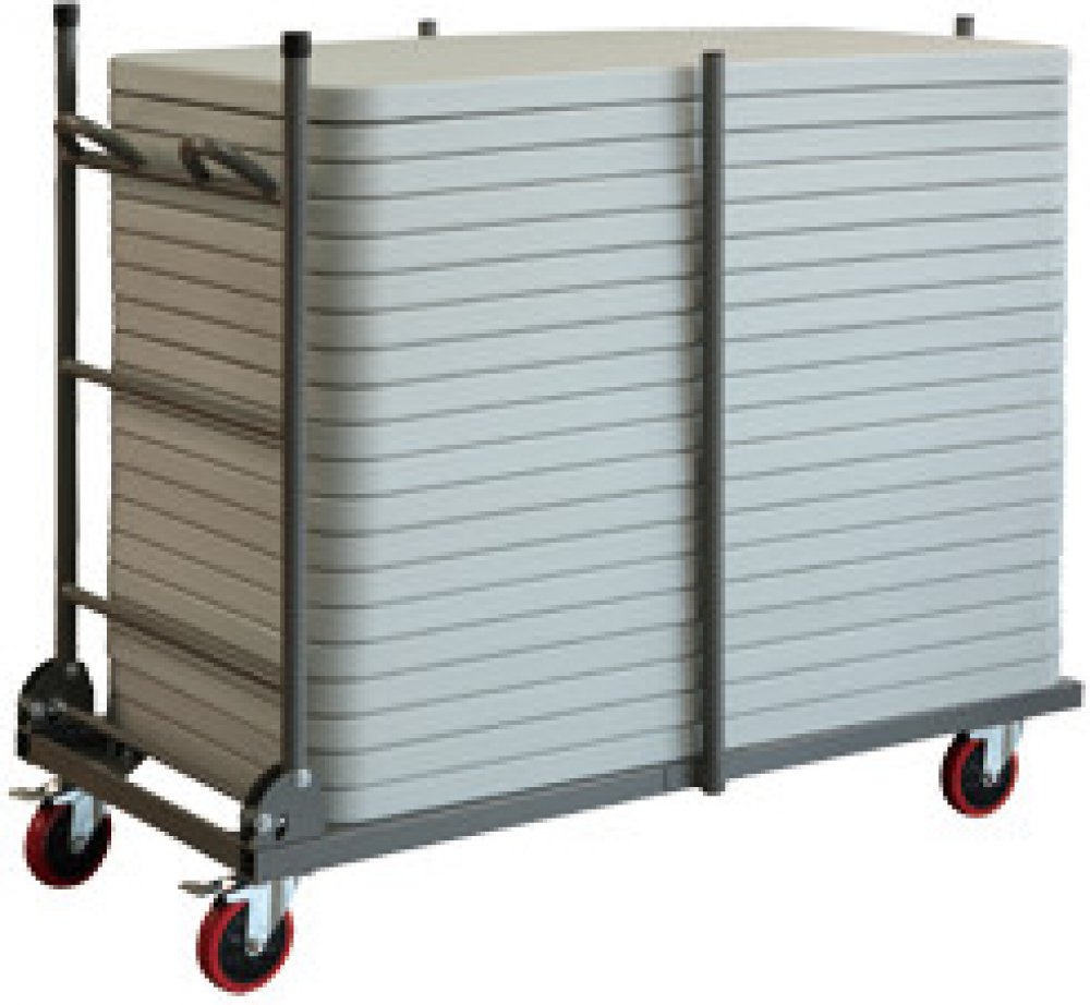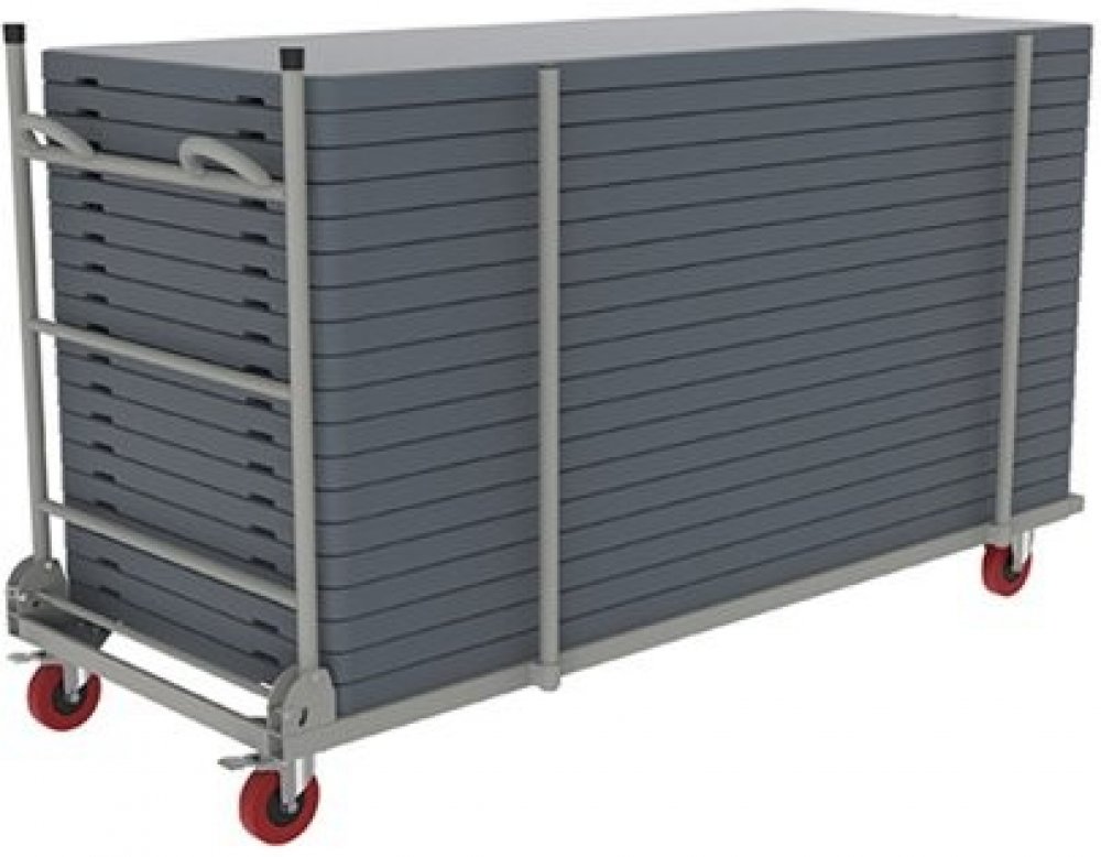 Speciální skládací transportní vozík Ltrolley pro stoly L120. - ocelová konstrukce stolu - vyroben z vysocehustotního polyetylénu - barva: světle šedá - 4 polyuretanová kola s integrovanou brzdou - vozík lze zcela sklopit a tím zabírá minimum prostoru