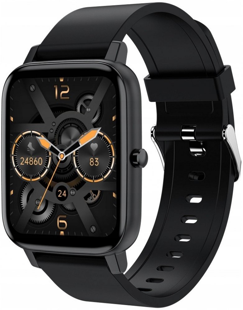 Tvar ciferníku:Hranatý; Barva pouzdra:Černá; Barva řemínku:Černá; Propojení s mob. telefonem; Úhlopříčka displeje:1,7"; Vodotěsnost a odolnost:IP67; Kapacita baterie (mAh):230; Hmotnost (g):46; Zařízení:Hodinky; Funkce:Měření tepu, Krokoměr