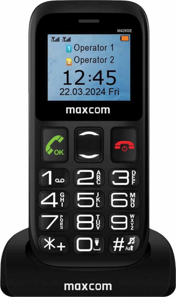 Mobilní tlačítkový telefon – 1,77" TFT displej, Dual SIM, baterie 600 mAh, paměť microSD do 32 GB, SOS tlačítko.