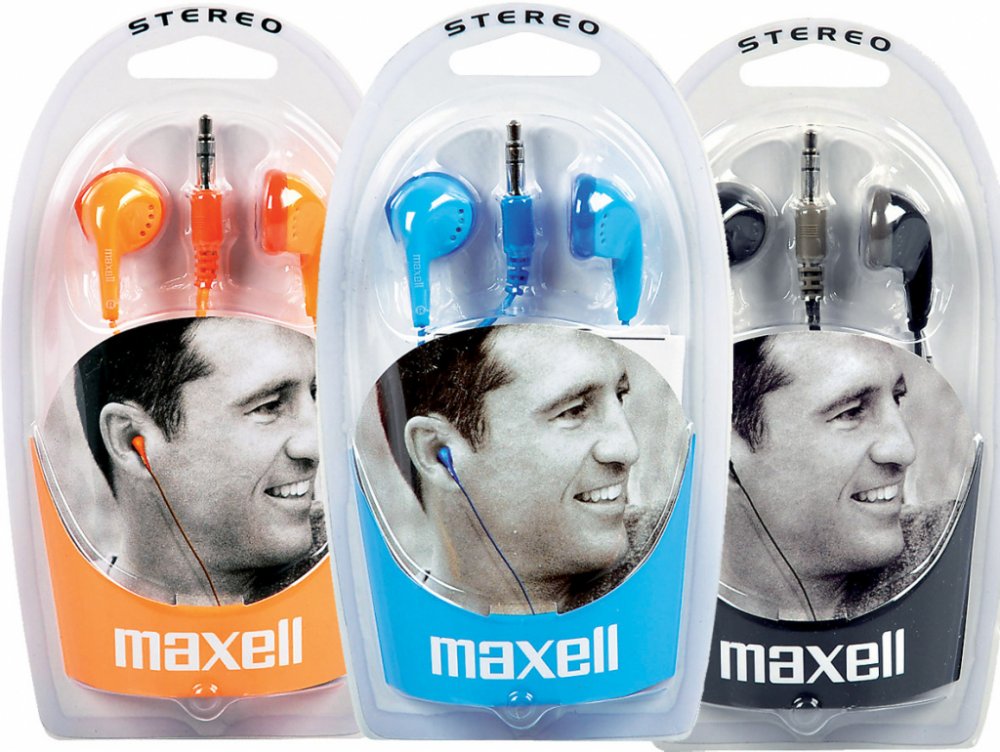 kabelová 5 mW 32 Ohm k mobilním telefonům 23000 Hz 20 Hz Maxell 95 dB/mW do uší 3,5 mm Jack pecky 120 cm 20 g 7.3 mm