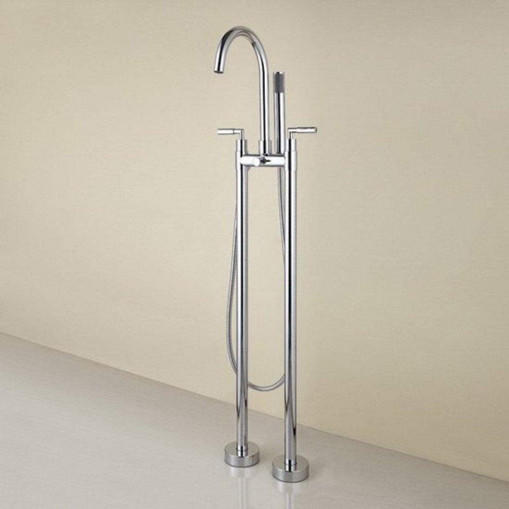 Maxwhite Macchie BF003Baterie vanová volně stojící sloupová s ruční sprchou Hmotnost: 25kg Celková výška baterie včetně podstavce a ruční sprchy je 1100mm Výška baterie včetně podstavce po výtokové rameno je 90cm Délka výtokového ramene od středu baterie po střed výtoku je 202mm. Baterie je opatřena ze spodní strany základen packami pro uchycení k podlaze za pomocí hmoždinek. Součástí balení jsou připojovací nerezové hadice na teplou a studenou vodu. Rozteč baterie je 150mm Sprchová hadice má délku 1500mm