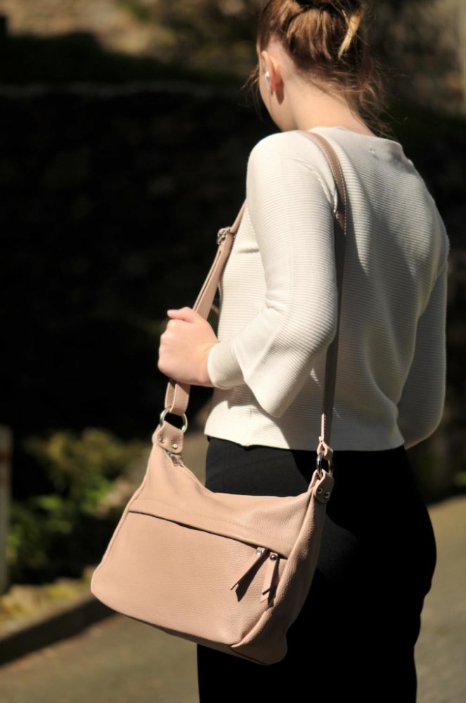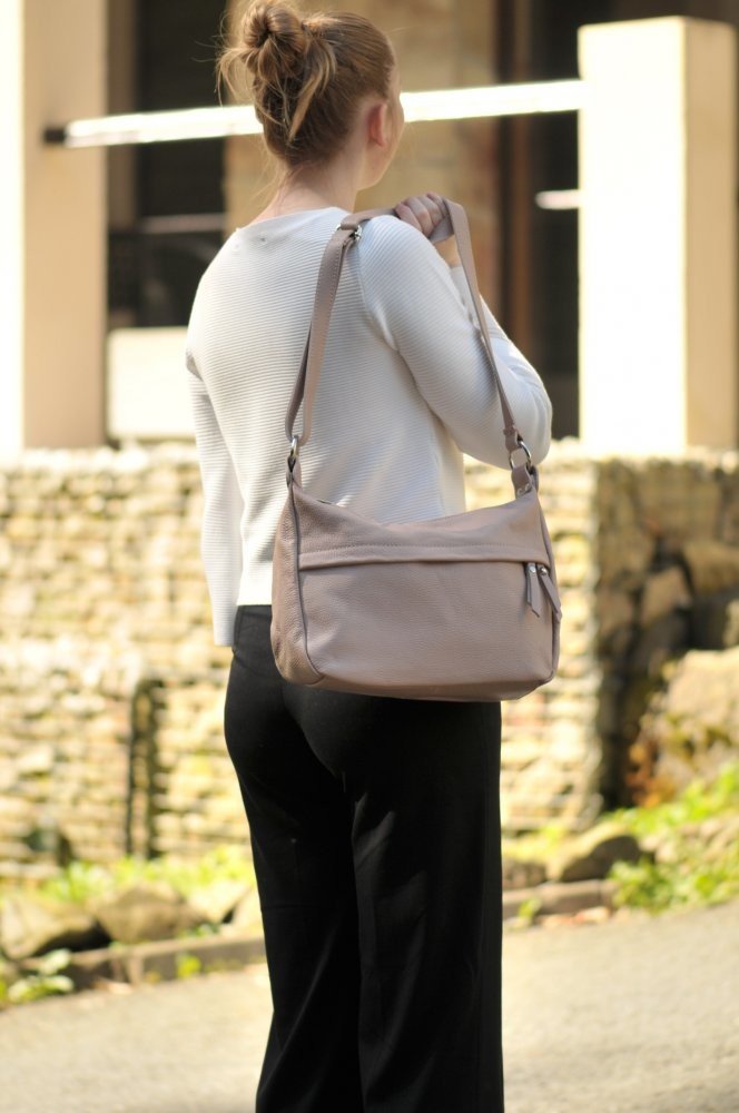Kožená kabelka italské značky MaxFly půjde snadno sladit s vaším outfitem a nabídne vám dostatek prostoru pro uložení Vašich osobních věcí. Kabelka je pěkně členěná, má jednu širokou hlavní kapsu rozdělenou na dvě stejně velké přihrádky. Výhodou kabelky je délkově nastavitelný popruh na rameno, který si upravíte podle vaší postavy. Maximální délka popruhu je 120 cm. Jedná se o nadčasový model kabelky italské značky Maxfly, která je vyrobená z pevné a matné hověziny, odolné proti poškrábání. Popis: hlavní kapsa je zabezpečena zipem, uvnitř j