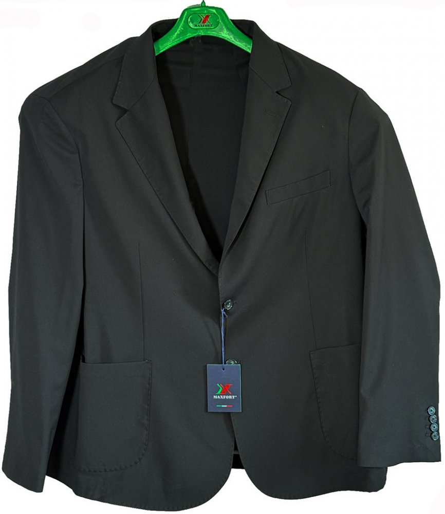 Jednořadé sako z pružné polyviskózové tkaniny, zapínání na dva knoflíky, klopový límec, našité kapsy, velikosti 1XL-10XL.